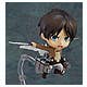 "Attack on Titan" just got cute, with this adorable Nendroid version of Eren Yeager!  The impulsive hothead comes with three facial expressions, interchangeable arms and legs, two swords with attachable blood effects, his Vertical Maneuvering Equipment with effects parts, and an alternate white-shirt-clad torso and a pole to recreate the courtroom scene, or any other scene you'd care to put Eren in that involves a pole.  A stand with a posing arm is also included. He's 10cm tall of uncontained fury--take him home with you today so he can protect you from little itty-bitty Titans!