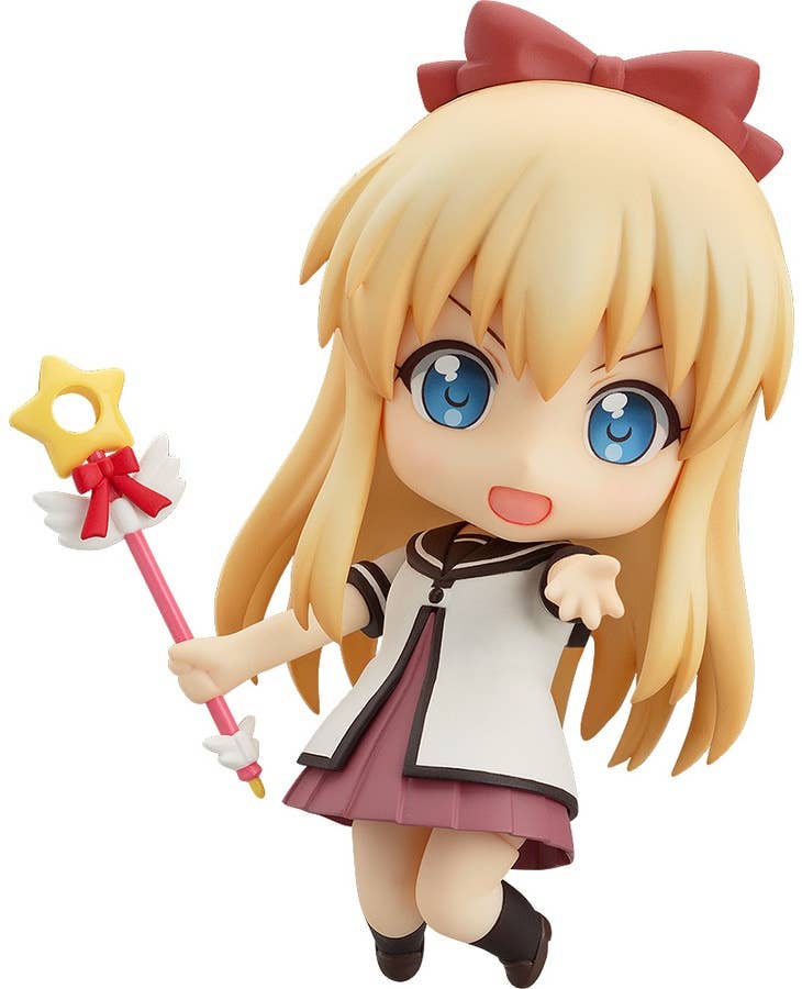 From the anime series "YuruYuri Nachuyachumi!" comes a rerelease of the flamboyant member of the Amusement Club - Nendoroid Kyoko Toshino! She comes with three face plates including her standard smiling expression, an expression with sparking eyes for her encounters with rum-raisin ice-cream as well as the American comic-based expression that appeared in the original manga!