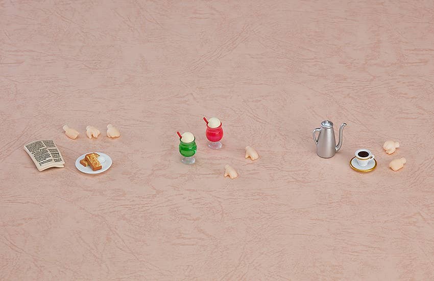 This new set of items from the Nendoroid More lineup brings us a set of cafe-themed parts, so you can enjoy your Nendoroids even more! Combine this set with the Nendoroid More Acrylic Stand Decorations: Cafe set to create a charming cafe for your favorite figures!