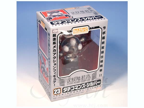Adorable AI walker/tankette Tachikomans Silver joins the Nendoroid line! Sculpted by Yuuichi of Peacemaker in cooperation with Nendoron, 13cm-long Tachikomans Silver comes with a pair of optional manipulators, two bottles of oil, and two cable attachments. Tachikomans Silver's limbs are individually articulated. Check out the rest of the Nendoroid-ized Tachikomas, too, linked below! Please note that figures such as this are mass produced, and as a result some inconsistencies in finish and painting may occur; these are not considered manufacturer's defects. If you absolutely must have perfection, prepare to do some touch-up work on your own.