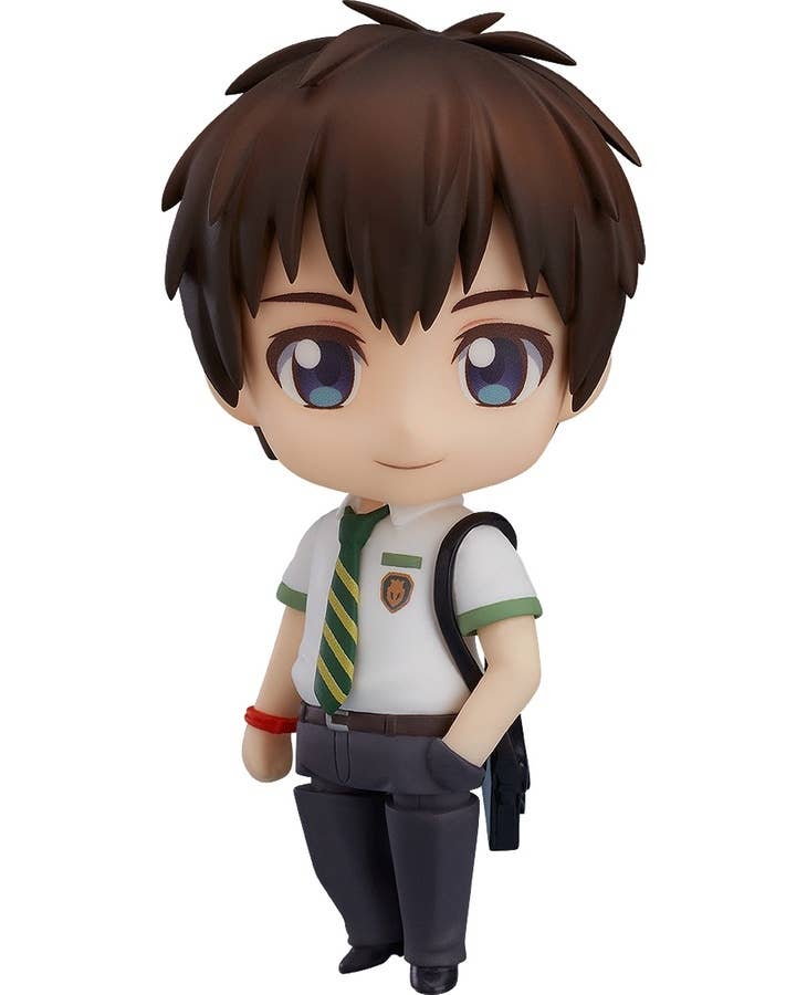 From the hit film "Your Name." comes a rerelease of the Nendoroid of Taki Tachibana. He comes with two face plates including a gentle smile as well as a face with writing on his cheek. His school bag is also included, and he also comes with an interchangeable hand holding a pen which ban be used with the alternate face plate to recreate the scene from the film! Be sure to display him together with Nendoroid Mitsuha Miyamizu who will be available for preorder at the same time!