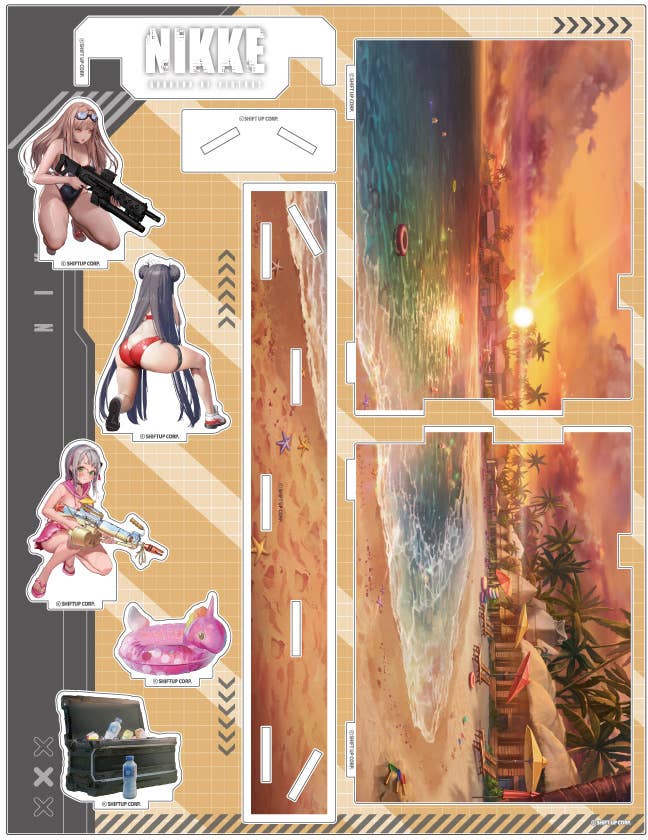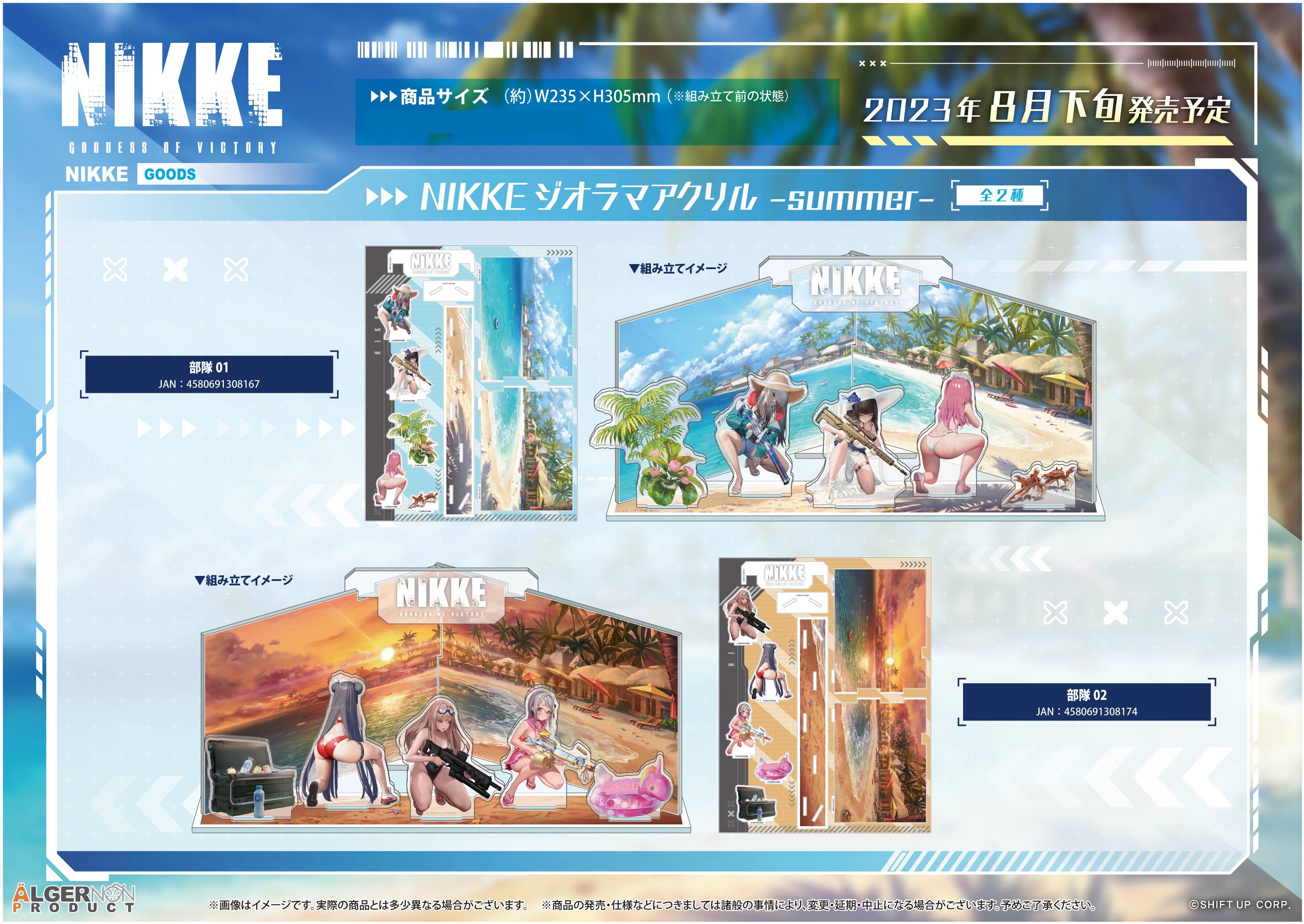 The swimsuit-clad Troop 02 from the popular RPG game "Nikke Goddess of Victory" is on high alert in this new acrylic stand from Algernon Product! Order it for your own collection today!