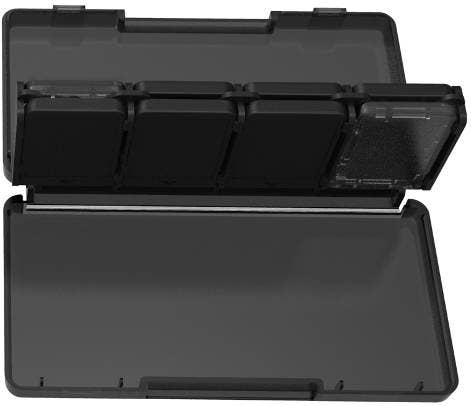 This handy case can hold up to 8 Nintendo Switch game cards, and also comes with a microSD card case that can be attached inside in place of one of the card case slots! The attachable microSD card case can hold up to two microSD cards.
