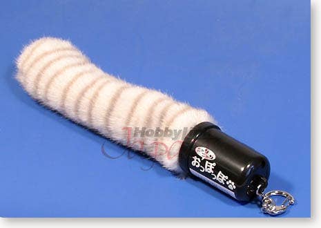 Very odd keychain of a 15cm-long American Short Hair cat's tail. Press the trigger to bend the tail downward as if it's giving you a handshake! The tail is made out of fake fur and there is a bell inside the tip of the tail.