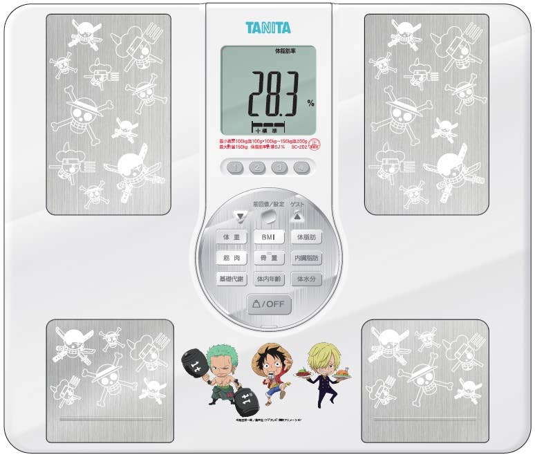 Not only does this digital scale give you information on your weight, BMI, body fat percentage, and so on, it also features the voices of Luffy, Zoro, and Sanji, who will talk when you change certain settings, or read off the measurement results for you!
