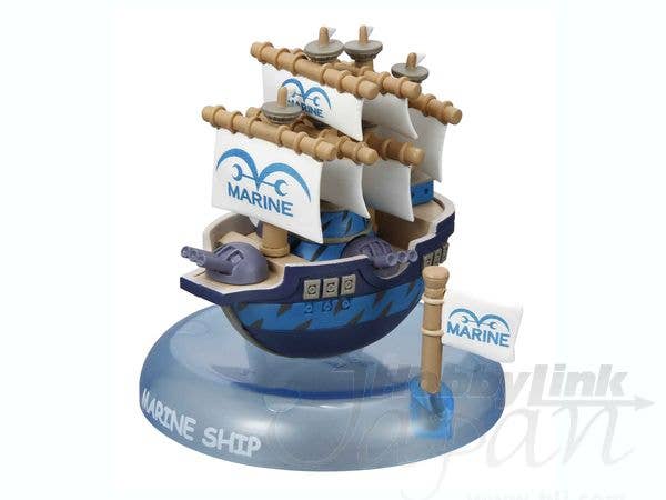 How cute is this? These charmingly small and cute versions of some of the ships from "One Piece" will rock back and forth with a touch, as if borne upon the ocean's waves! You might get the Going Merry, the Thousand Sunny, the Nine Snake Pirates' ship, Garp's ship, or a Marine ship--there's a total of 5 different possibilities to trade and collect. Sold by the randomly packed box of 6. Please note that these are trading items and are individually sealed and randomly packed in boxes of 6 by the manufacturer before shipment to HobbyLink Japan. As a result we are unable to honor requests for individual or specific items, nor can we promise you which one(s) you will receive in a box. Please order only if you are willing to accept any of the possible types.
