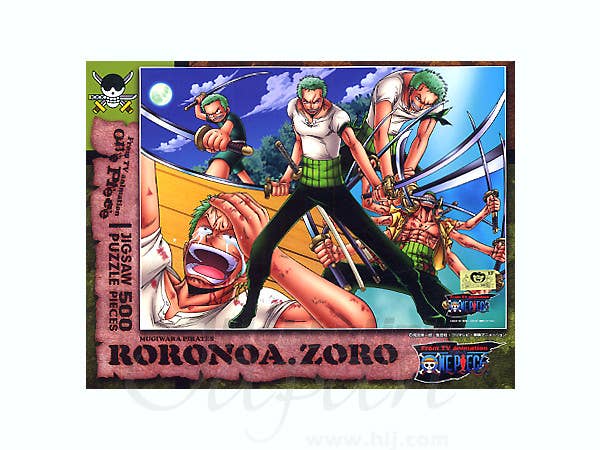 Zoro's goal to become the best swordsman in the world has its roots in his past--and it keeps him going even now! This jigsaw puzzle has 500 pieces; it will measure 38cm by 53cm when completed.