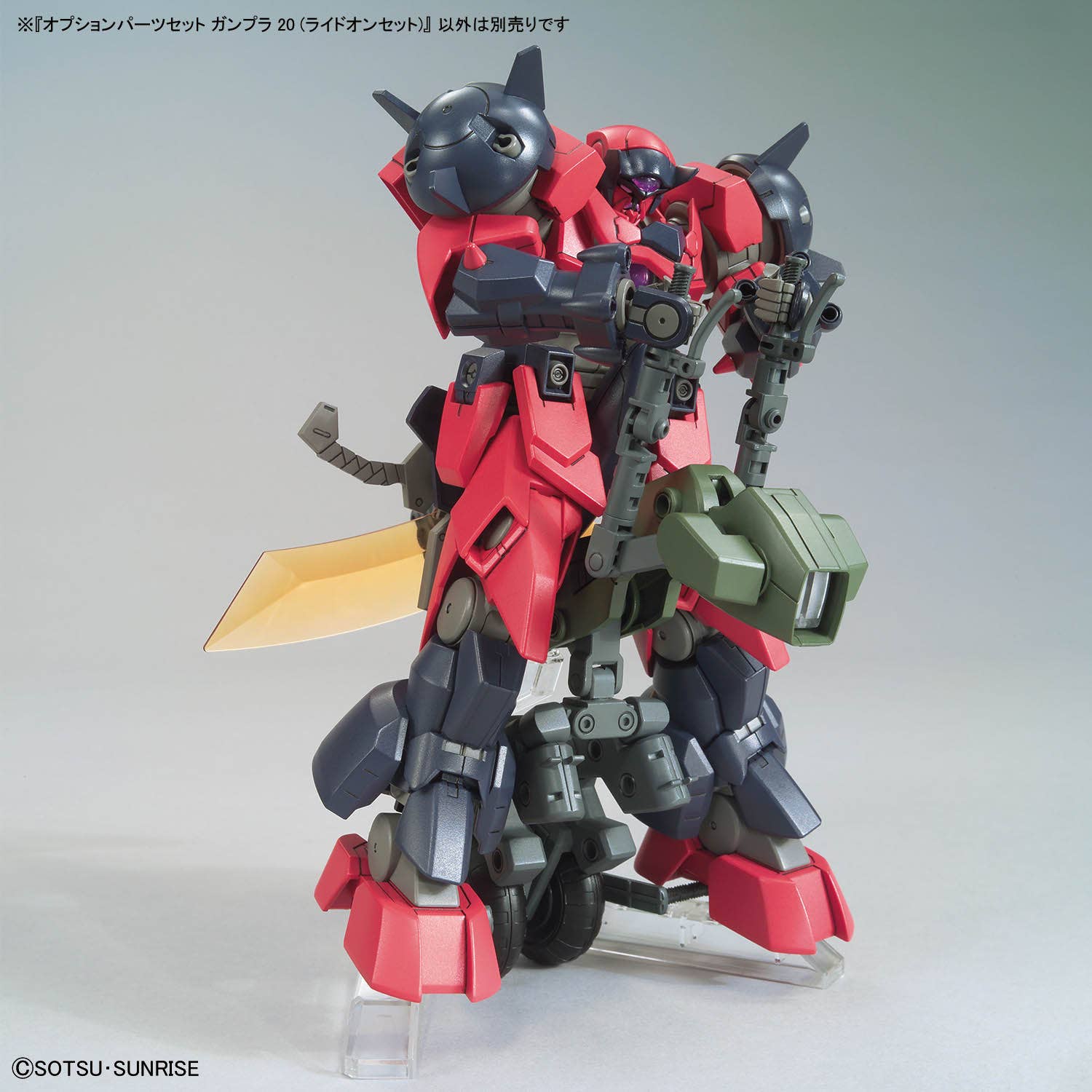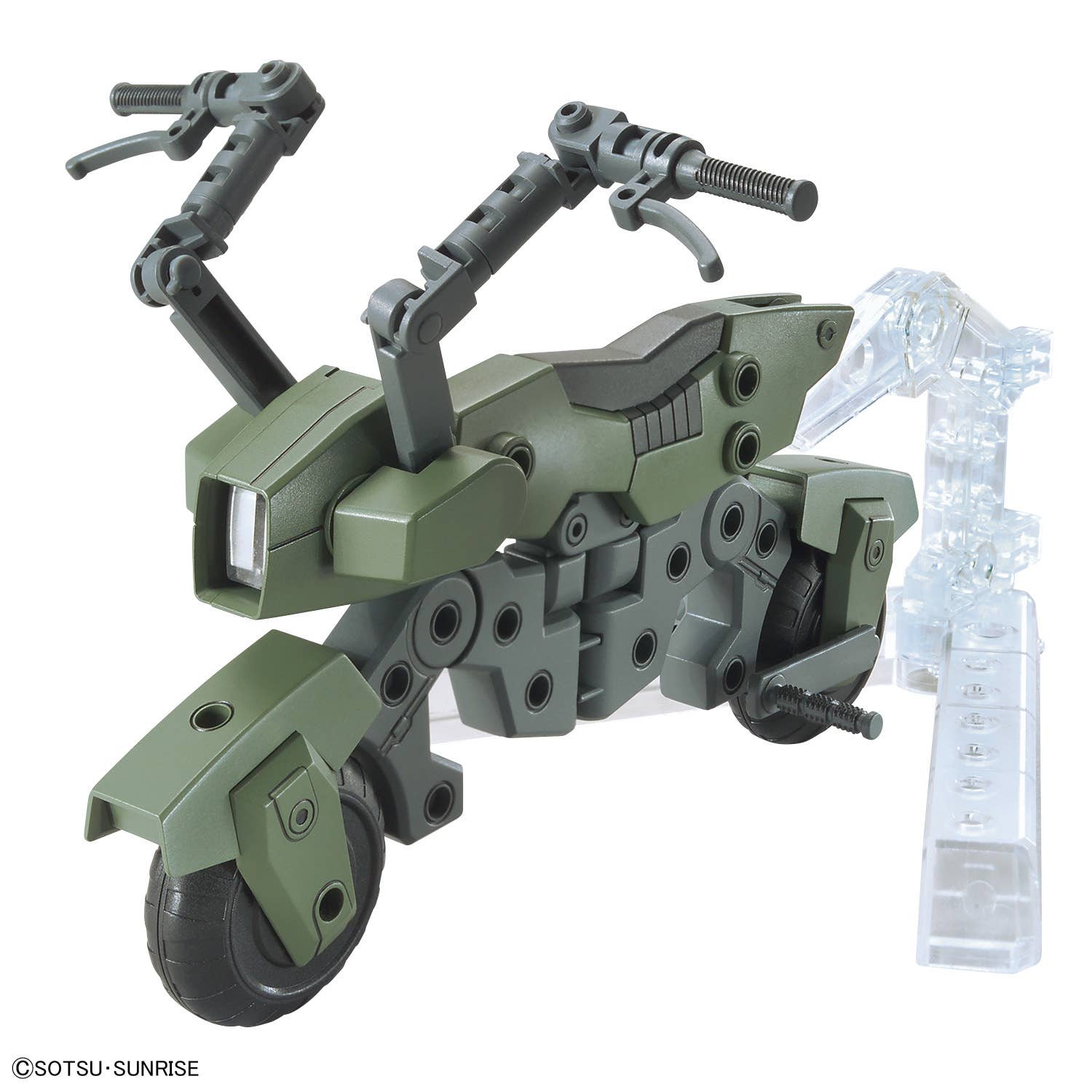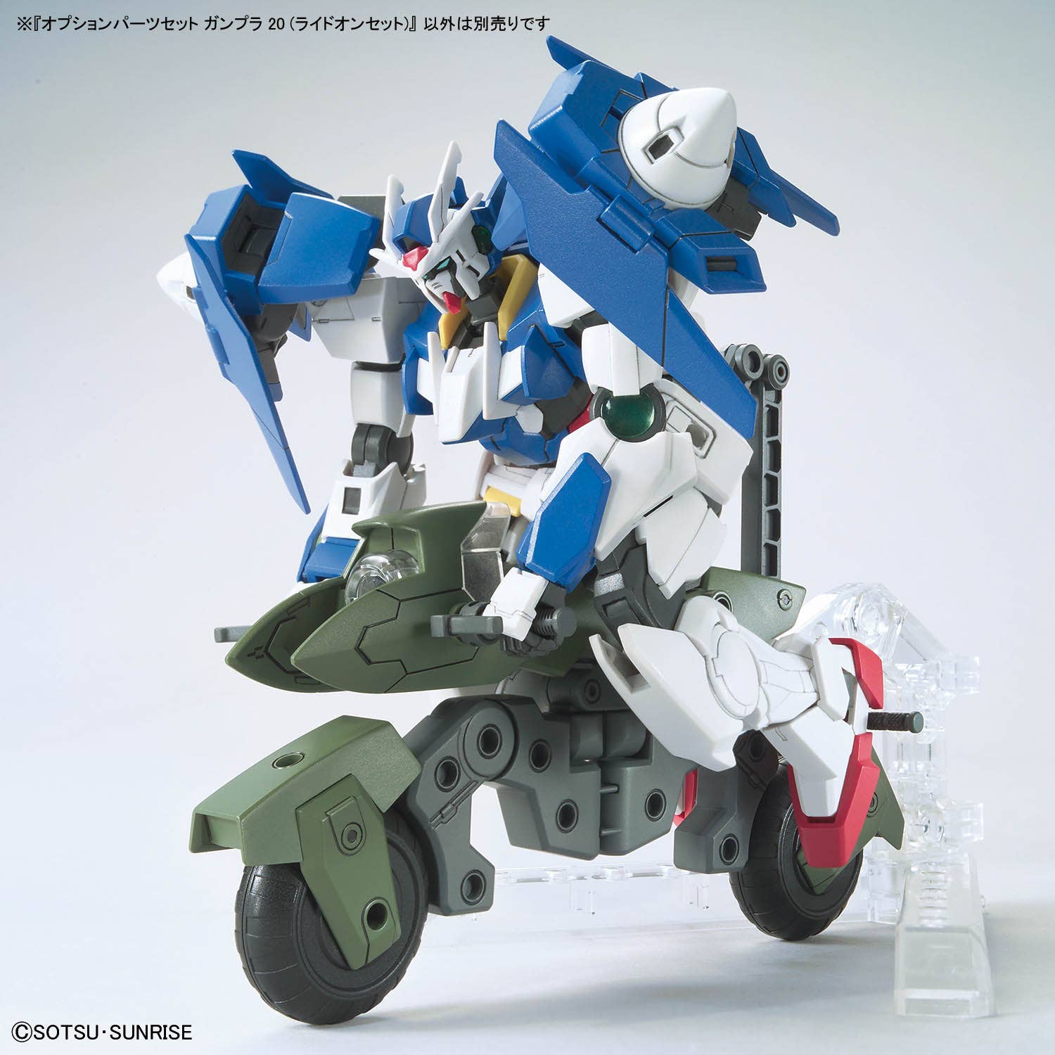 The Mega Ride Launcher and Machine Rider are now available as an option parts set from Bandai! The Mega Ride Launcher can transform from Mega Rider mode to Mega Launcher mode; you can recreate mobile-suit towing scenes when it's in Mega Rider mode. Joint parts are included that are compatible with each HG series. The Machine Rider can transform into ride and stand positions, allowing you to pilot a variety of Gunpla depending on your imagination! Three different front cowl patterns are included. Make your Gunpla displays more dynamic, and order yours today!