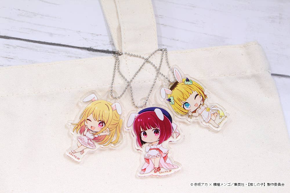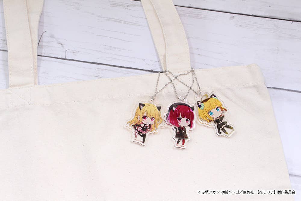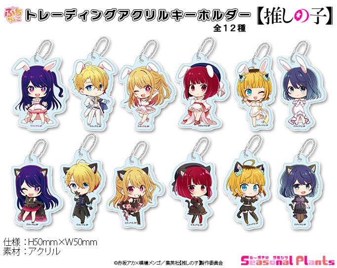 These "Oshi no Ko" acrylic keychains feature all your favorite characters in your choice of white or black clothing! There are six characters, each in two different outfits, making a total of 12 different items to collect and trade; they're randomly packed in boxes of 12. Order yours today!