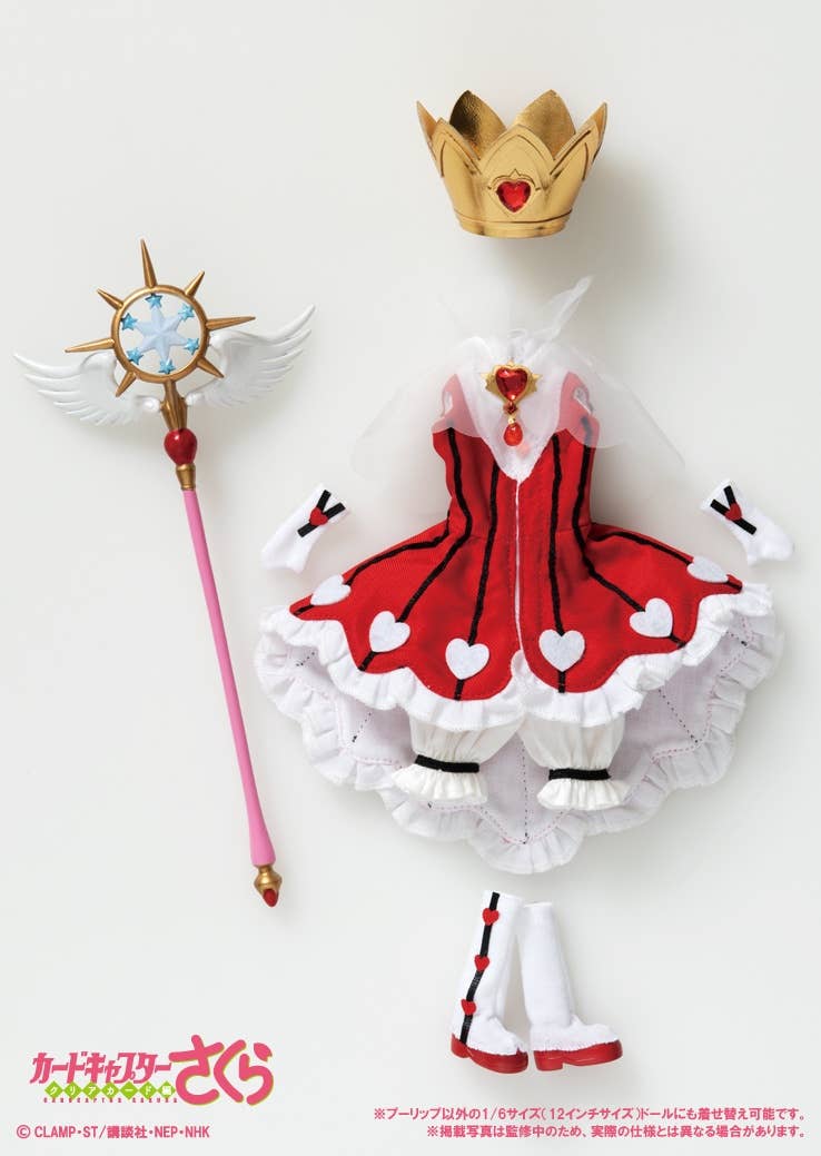 Groove brings us their newest collaboration with the popular anime "Cardcaptor Sakura Clear Card Edition" -- Sakura's adorable Rocket Beat battle costume is now available as a separate outfit for 1/6-scale dolls! The Dream Wand is included (with a different design on the star part than the Dream Wand included with the Tomoeda Junior High School uniform), and the dress features velcro in front, making it easy to put on and take off! Check out the heart-shaped jewel on the chest and the crown, echoing the heart motifs on the gloves and shoes. The black lines on the dress are sewn-on ribbons for a luxurious look! Your favorite 1/6-scale doll will love it, and so will you -- order yours today!