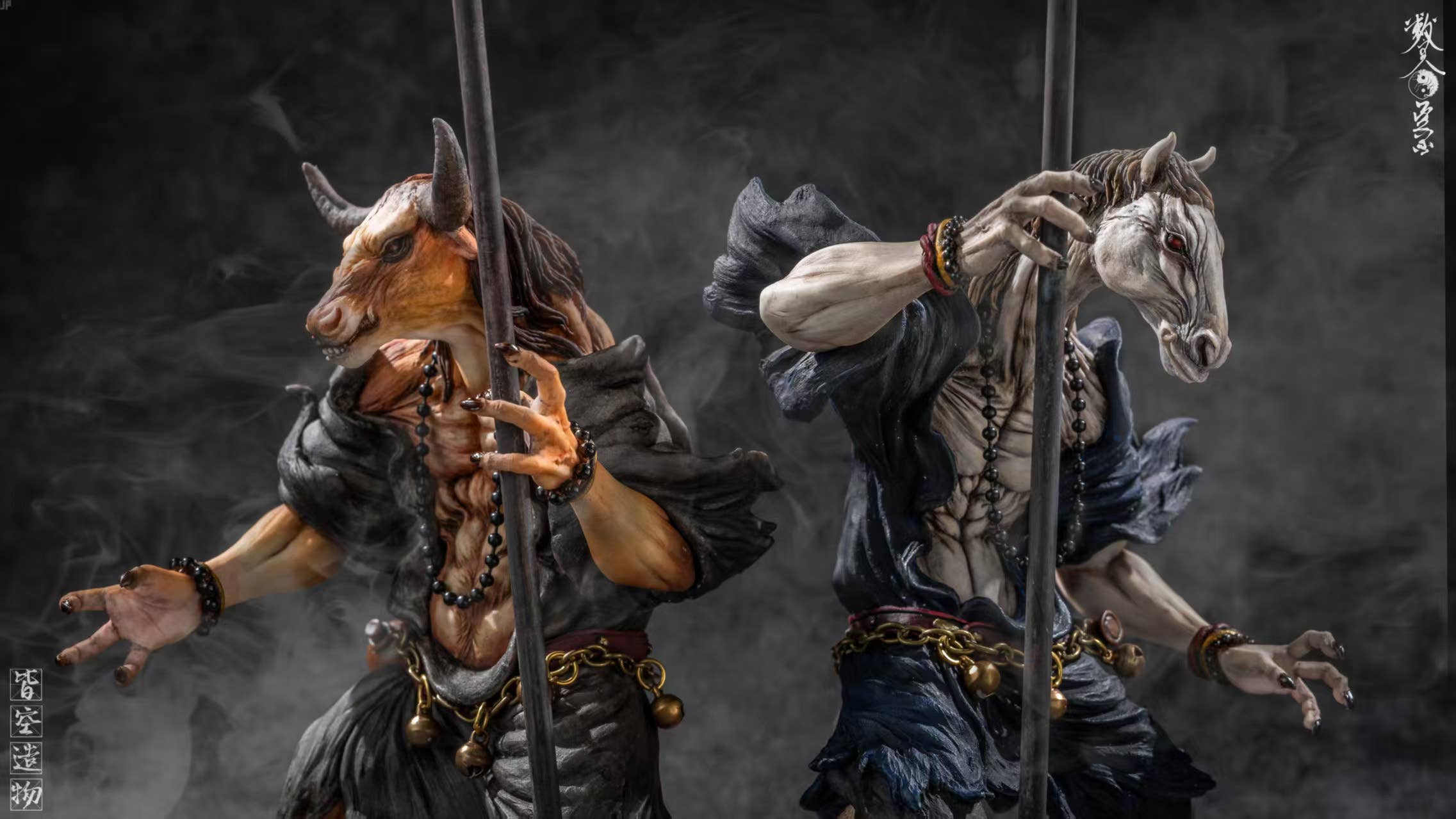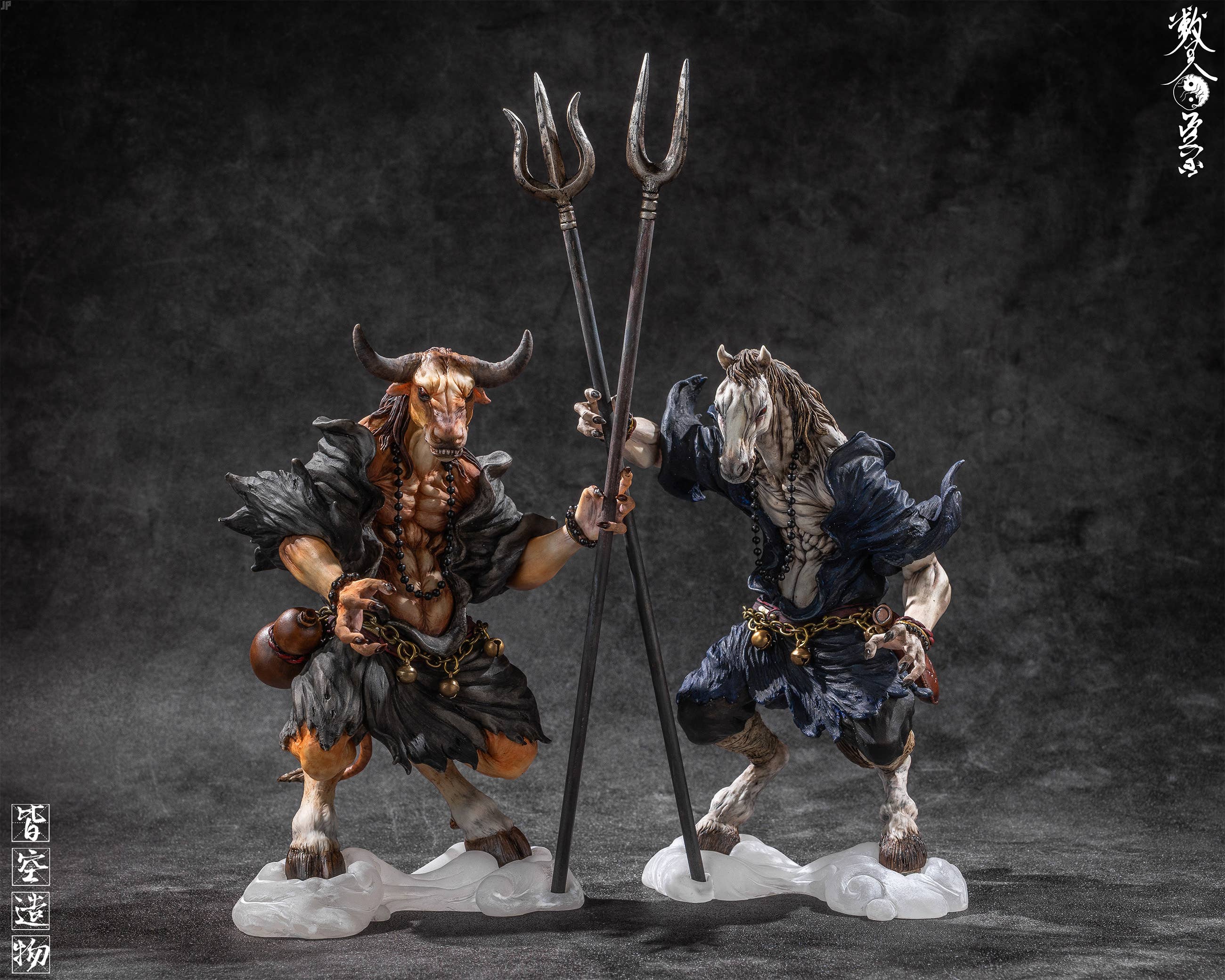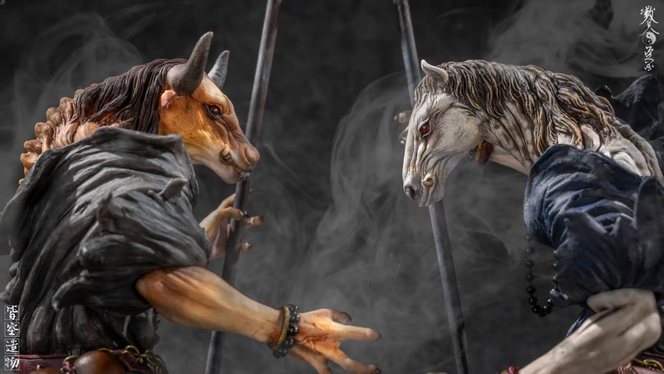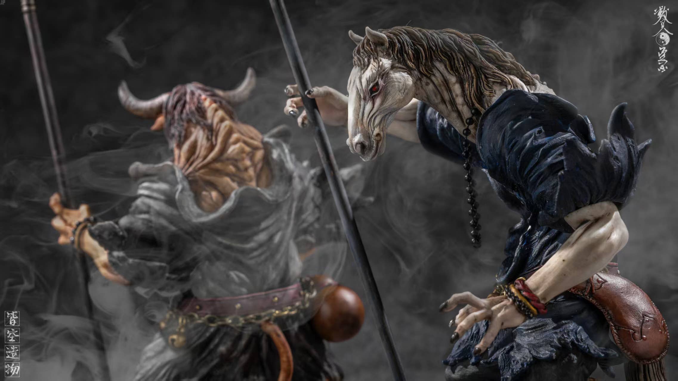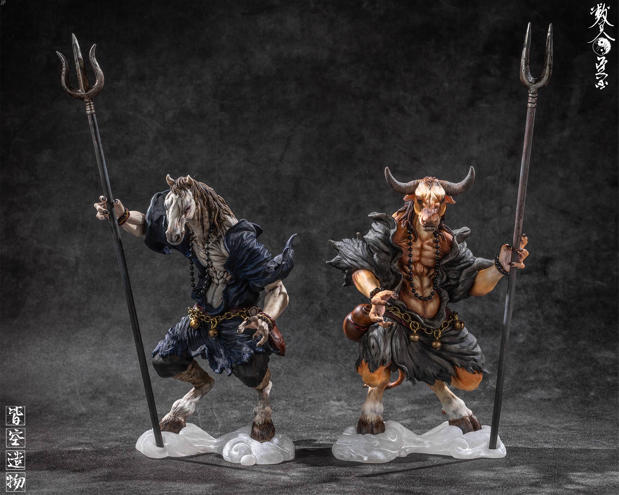 Nihility Creation presents non-scale resin display statues of the underworld's prison guards, Ox-Head and Horse-Face! Each highly detailed creature wields a trident and stands on a cloud, brimming with the awe-inspiring power of hell's messengers. Place your order today!