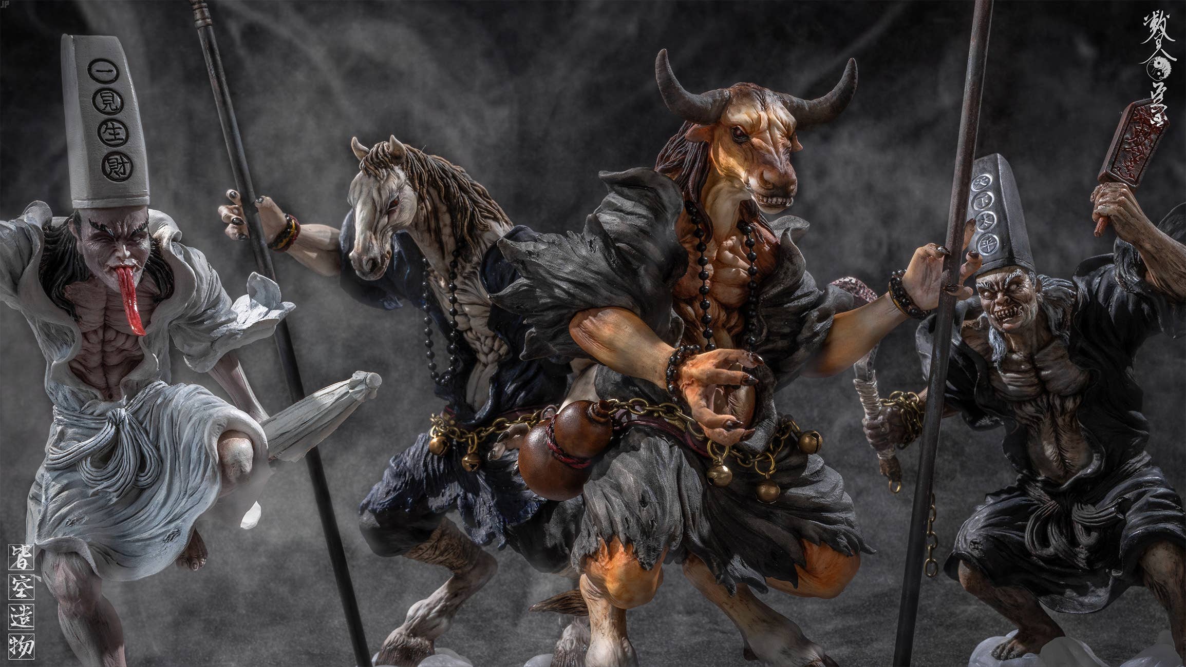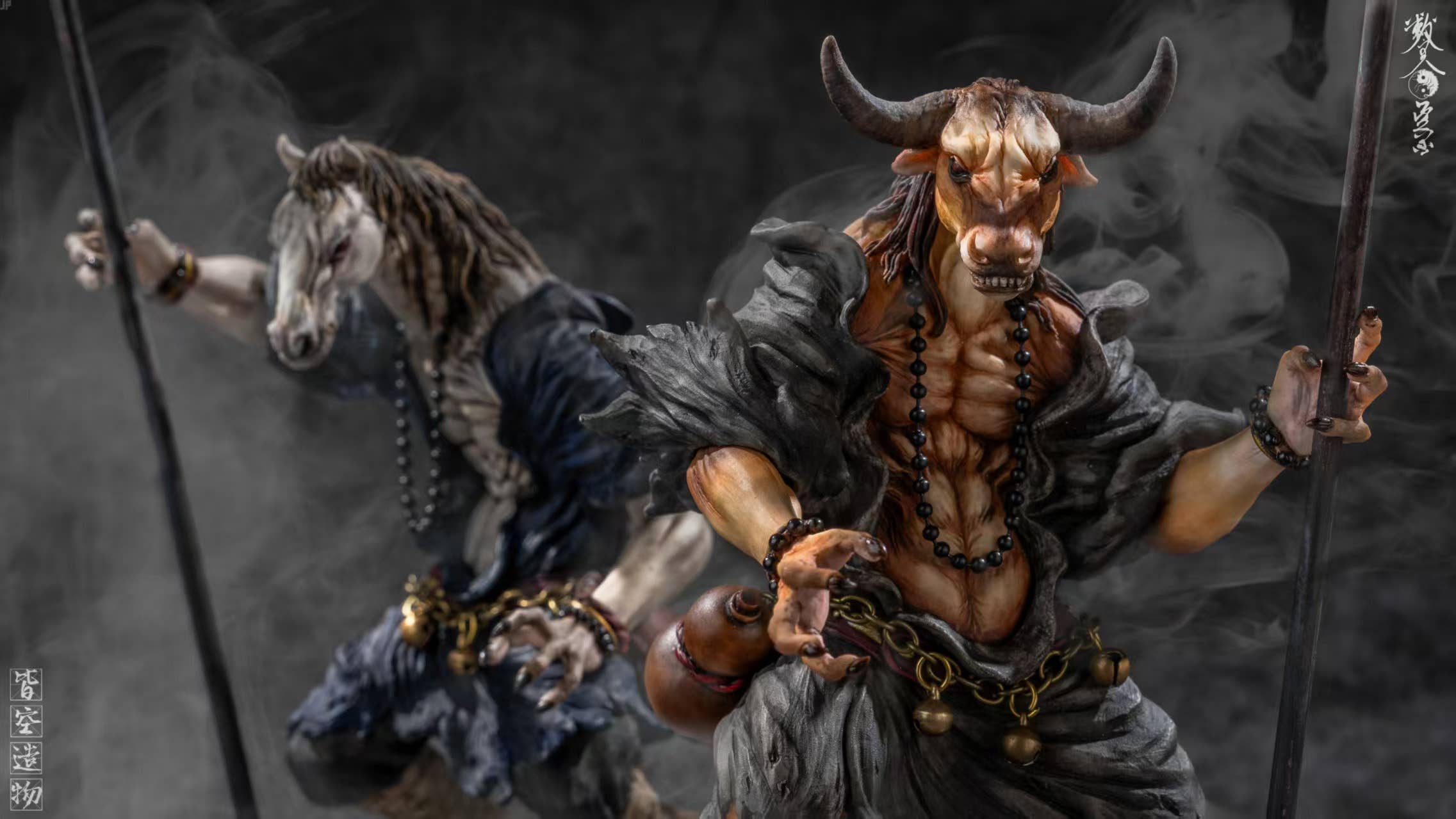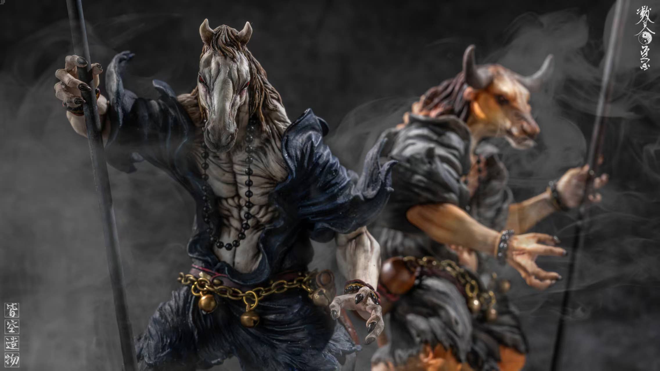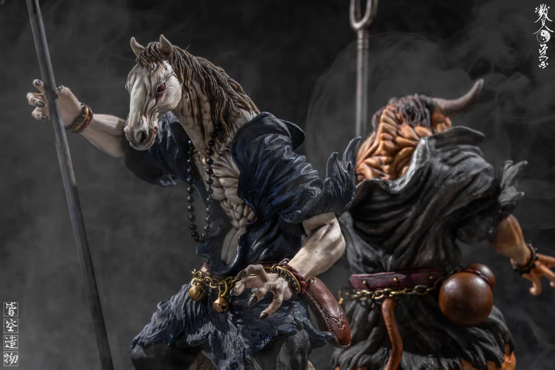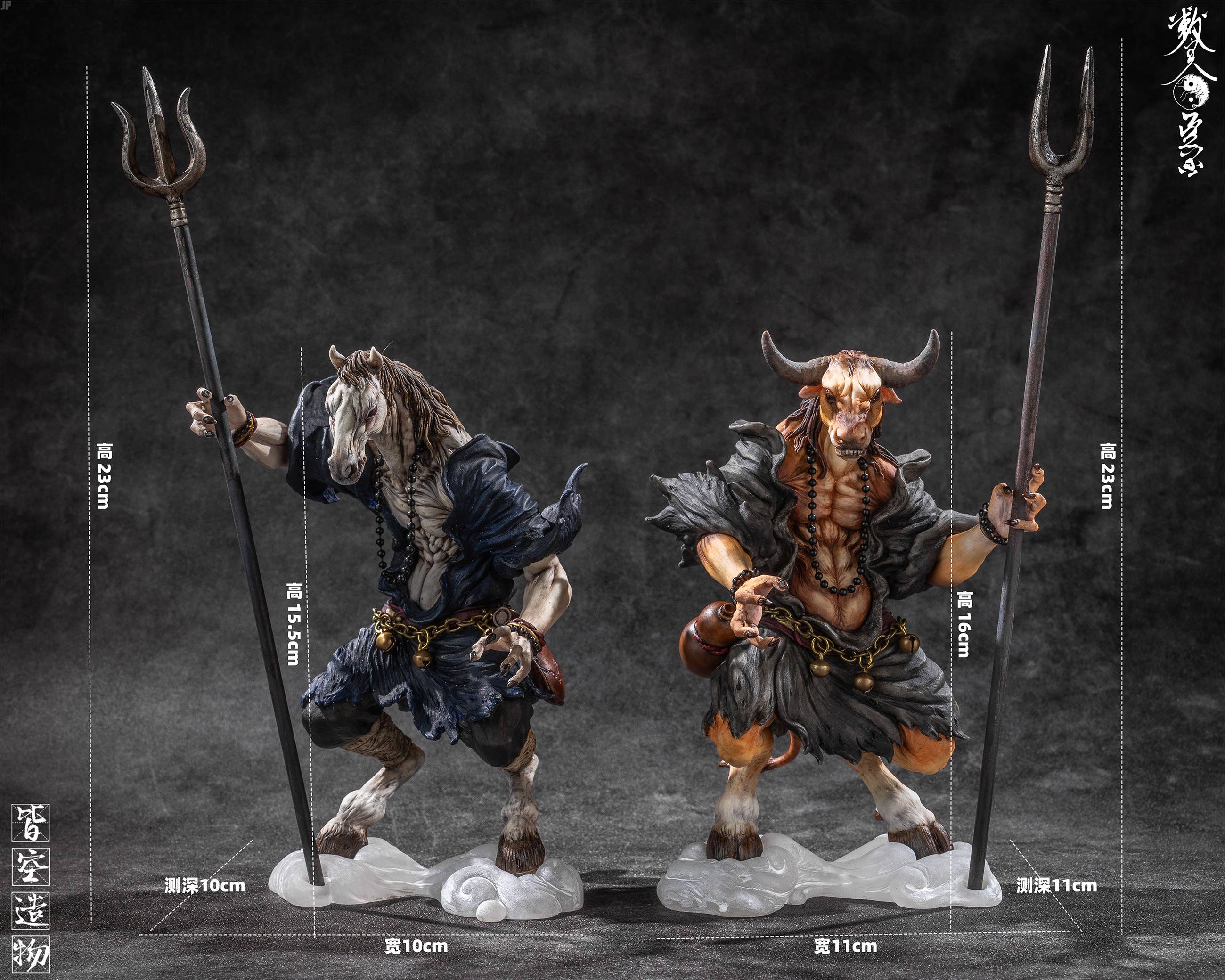 Nihility Creation presents non-scale resin display statues of the underworld's prison guards, Ox-Head and Horse-Face! Each highly detailed creature wields a trident and stands on a cloud, brimming with the awe-inspiring power of hell's messengers. Place your order today!