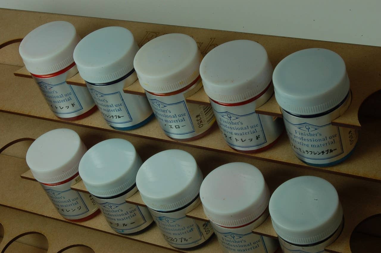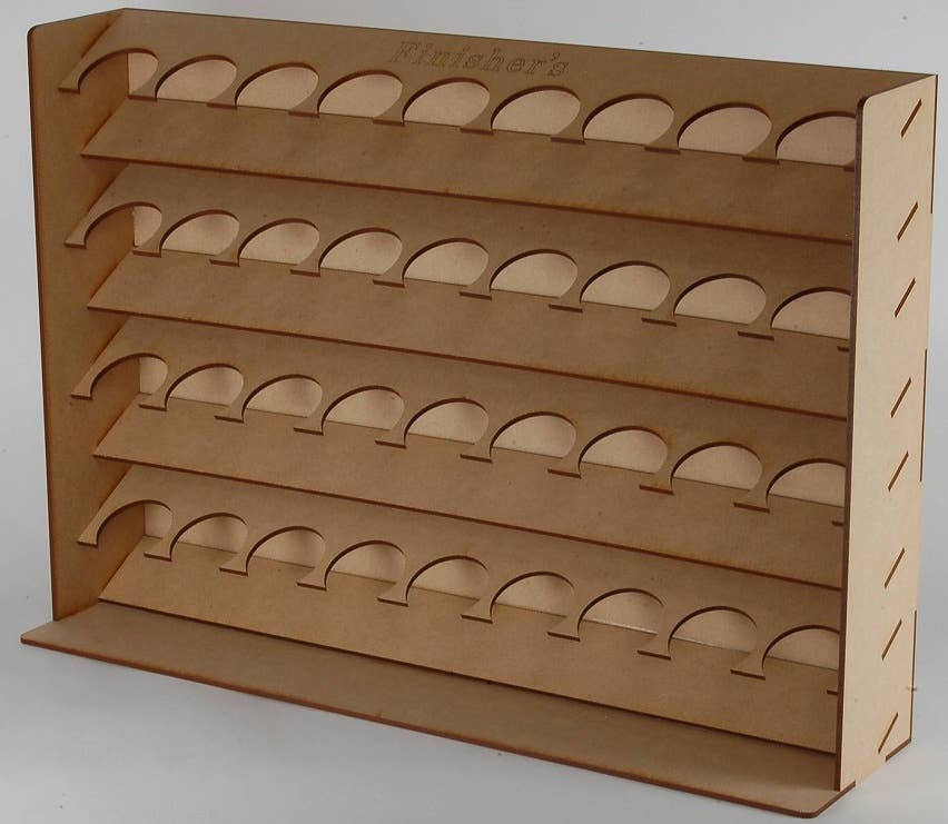 A useful and easy-to-assemble wooden paint rack!  Measures 28.7cm tall, 41cm wide and 10cm deep.