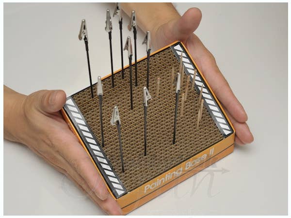 Corrgated cardboard center is perfect for holding sticks that you can use to hold parts for painting. 10.5 x 15cm base, highest part is 9cm high.