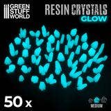 Take your diorama to the next level with this 50 piece set of phosphorescent resin crystals! These medium resin crystals are molded into an assortment of shapes big and small for a more natural look, and will glow in the dark when exposed to light for a time to really add that classic sci-fi and fantasy element to your diorama. Let your imagination run wild and create fantastic caves, caverns, mine tunnels, and so much more with these phosphorescent crystals. Don't miss out, be sure to order yours today!