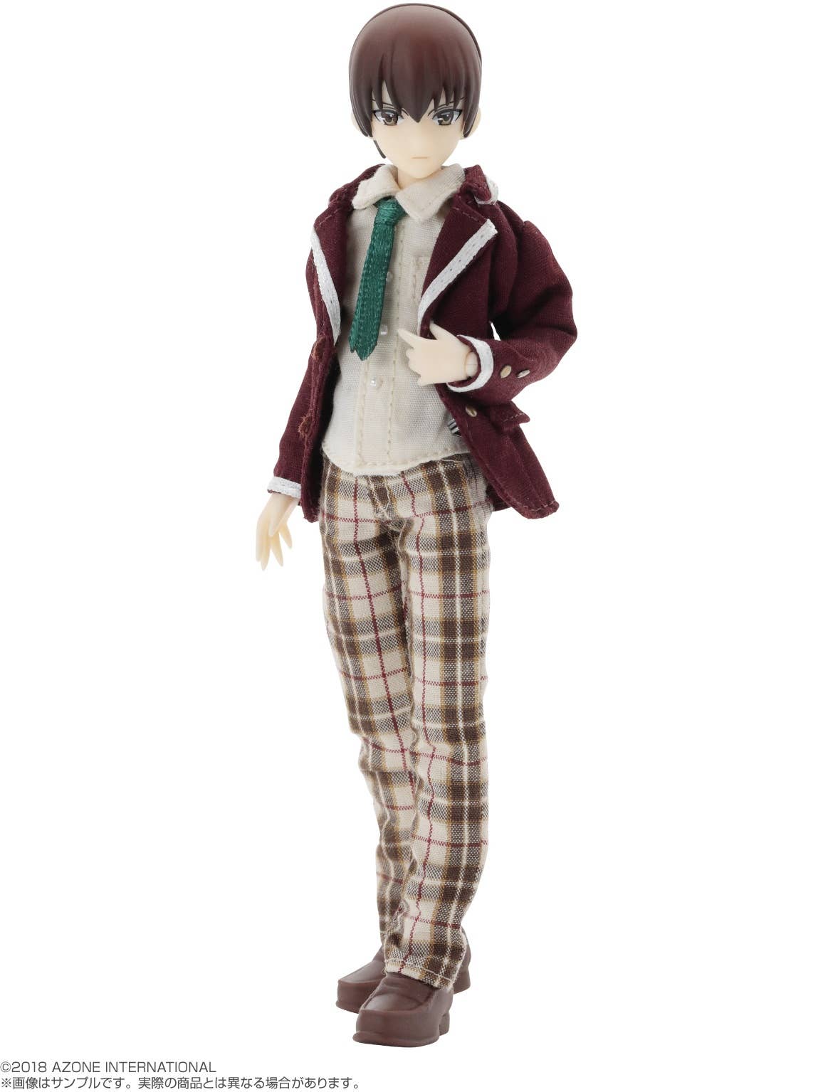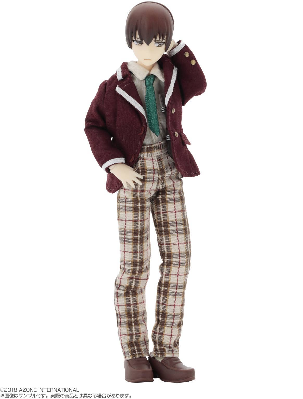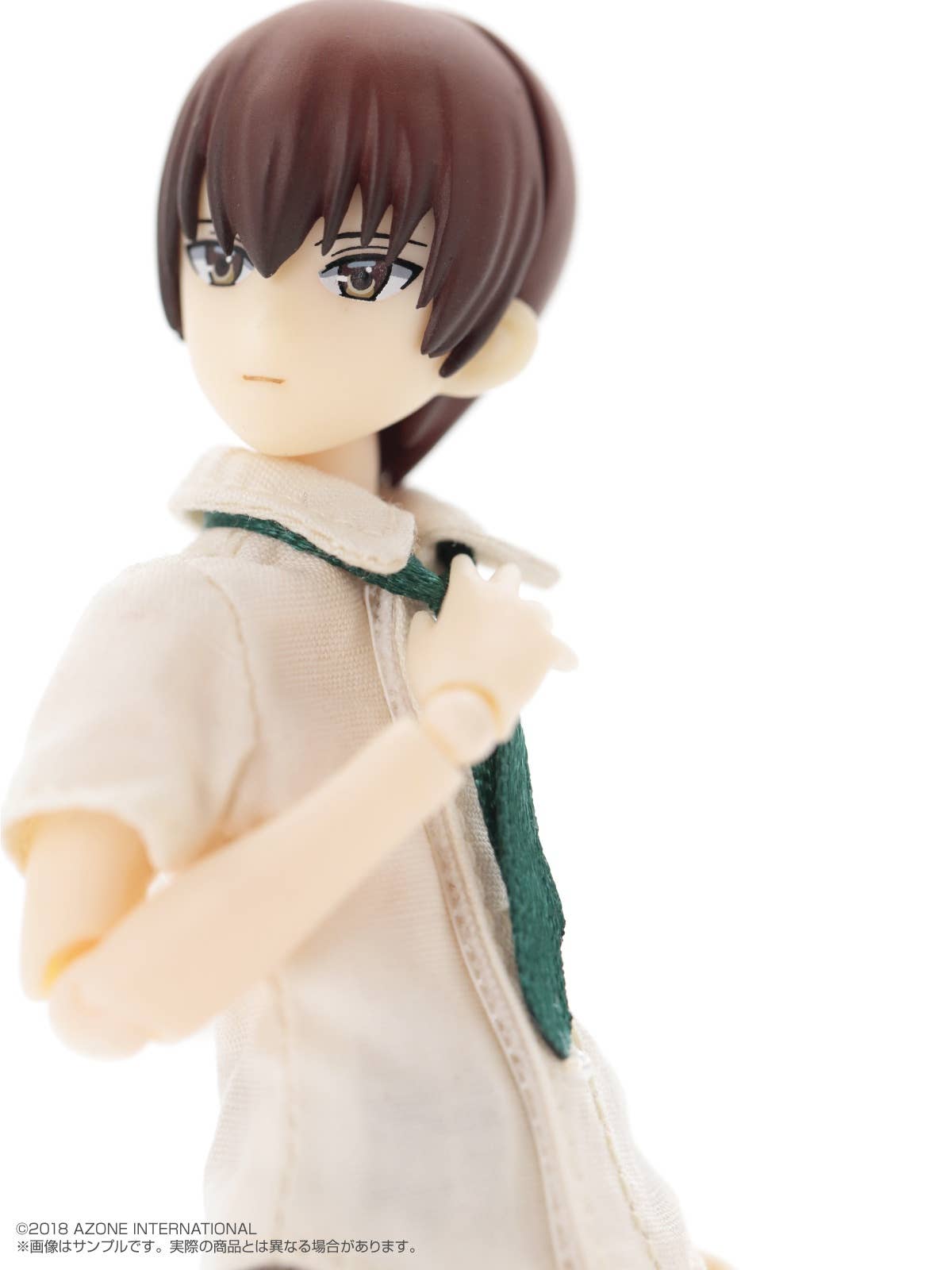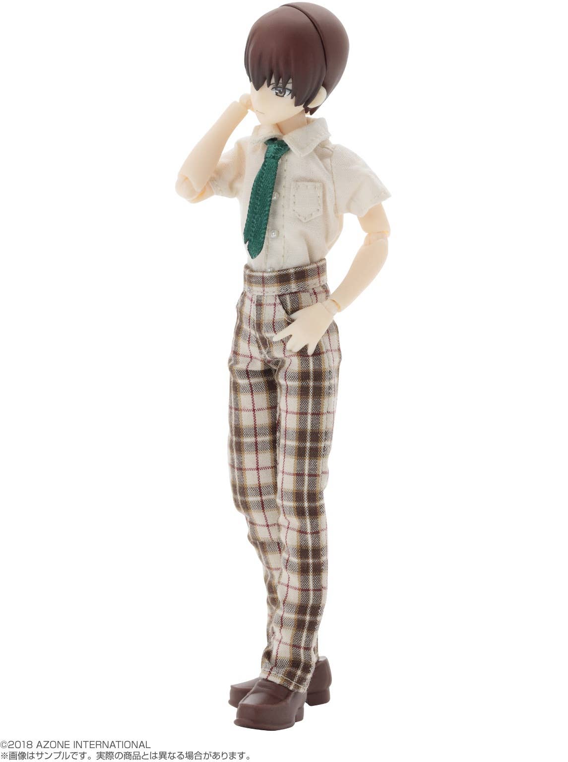 Each character's head parts and face parts can be rearranged to create your favorite character. 1:12 scale doll series Picco Danshi introduces variation colors that expand on the amount of rearrangements you can make! This doll features the character Hajime Ishikawa, with brown hair and eyes. He comes with a shirt and tie, plaid pants, a blazer, and brown loafers. Order today!