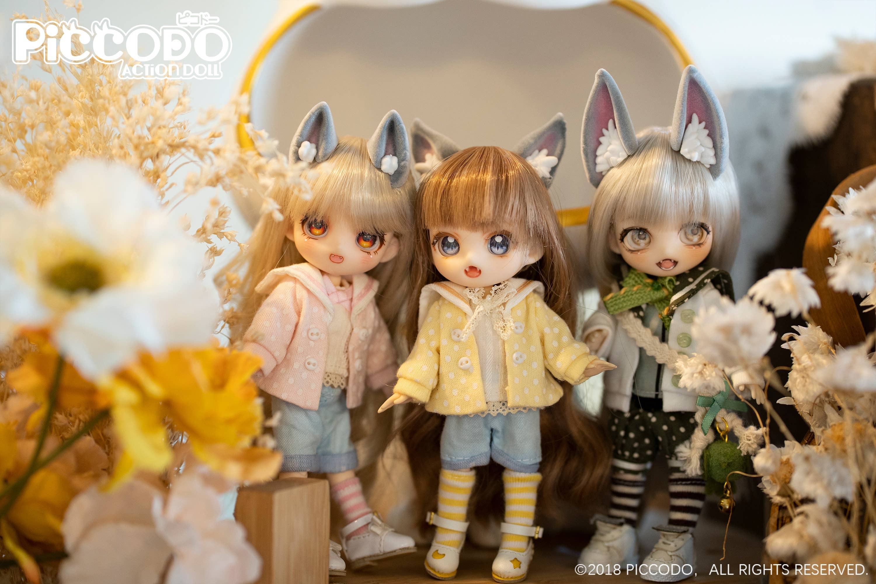 Genesis brings us adorable cat-ear accessories for your favorite PICCODO dolls! They attach to your doll's head with a built-in magnet, and the surface is flocked for a fun fuzzy feel! There are three different styles of cat ears, each a different size, and all are available in your choice of white or gray color. Please be aware that the dolls and other items shown are not included. Place your order today!