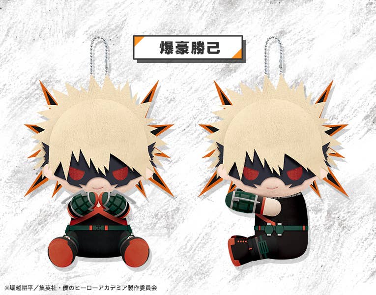 Your favorite characters from the TV anime "My Hero Academia" have now been turned into cute PitaNui plush mascots! The hands of these mascots act as a clip, so you can clip them to small objects like pencils, or use their ball-chain straps to hang them up anywhere you please! Their heads are even rotatable so you can turn them to face left or right. Katsuki Bakugo is approximately 15cm tall. Be sure to order yours today!