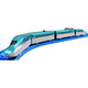 A nicely detailed and only slighly caricaturized motorized model of a Series E5 Hayabusa Bullet Train. Set includes four cars. Rail not included. Requires one LR03 (AAA) battery.