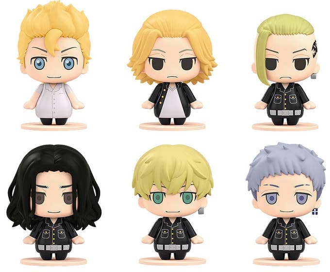 These adorable pocket-sized figures of your favorite "Tokyo Revengers" characters include interchangeable parts to display them sitting down! Each one comes with a stand. There are six characters available, and you'll get one of each. Place your order today!