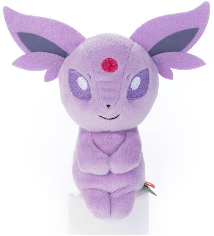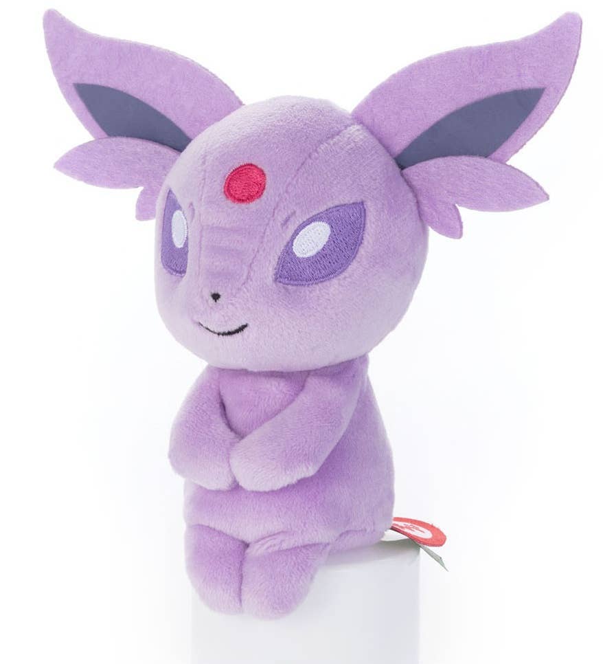 This adorable plush Espeon comes posed in a sitting position so you can place her on various ledges, like the edge of a shelf or desk!