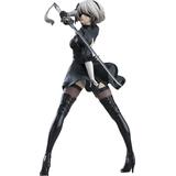 2B, also known as YoRHa No.2 Type B from "NieR:Automata Ver1.1a," joins the "POP UP PARADE" figure lineup from Good Smile Company! She's seen in a dynamic pose, turning her head toward you over her shoulder with her sword at the ready, as if you've startled her. Her dress is subtly detailed, and her base is included. Order her for your own collection today!