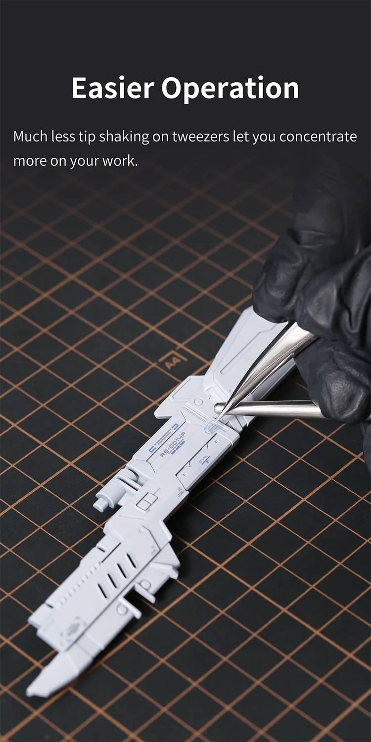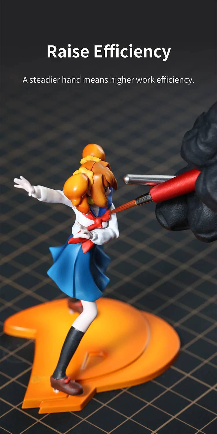 This tool is designed to support tasks by reducing hand tremors during fine work using tweezers or during brush painting, thereby stabilizing the work and minimizing errors.