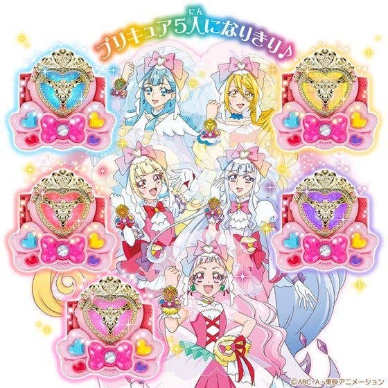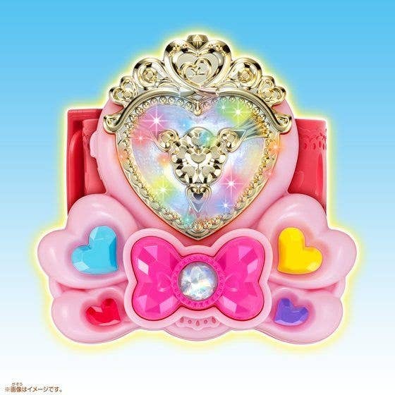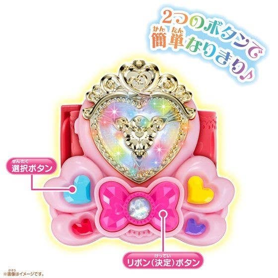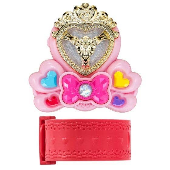 From "Hugtto! PreCure" comes the bracelet used by the Cures to perform attacks! It's great for cosplay, as well as a collection piece. It features two buttons: a blue heart button to select the option you want, and the ribbon button to enter your selection. Order today!