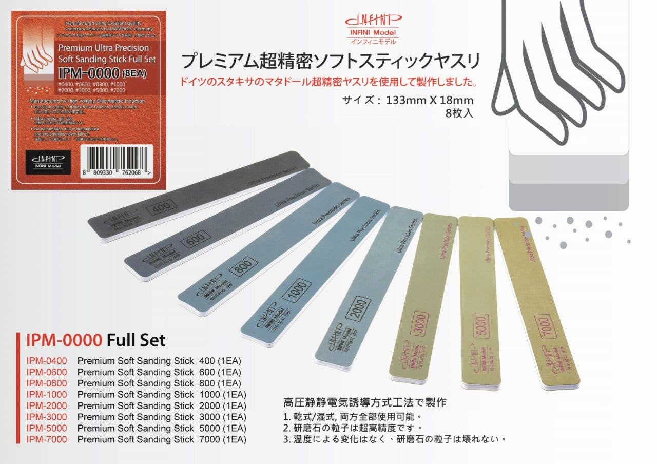 This sandpaper full set includes 8 different sizes of double-sided, ultra precise premium soft sanding sticks that boast excellent quality soft sticks for wet and dry abrasive work, ultra precise grit sizes and no deformation due to temperature.