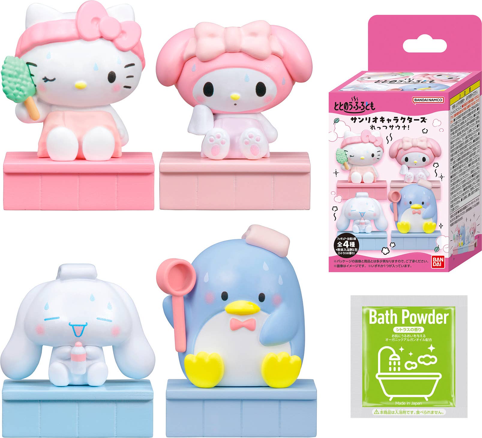 Your favorite Sanrio characters are enjoying themselves in a sauna in this new lineup of figures from Bandai! Each figure comes with a packet of citrus-scented bath salts, too. There are four different adorable figures to collect and trade, and we'll choose one for you at random. Order yours today!