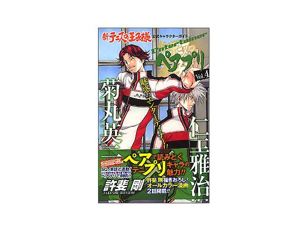 This slim volume is jam-packed with information about Masaharu Niou and Eiji Kikumaru from "Prince of Tennis," including several funny short manga stories. Soft cover, all text in Japanese. 50 pages, 34 in color. Includes a postcard of the cover illustration.