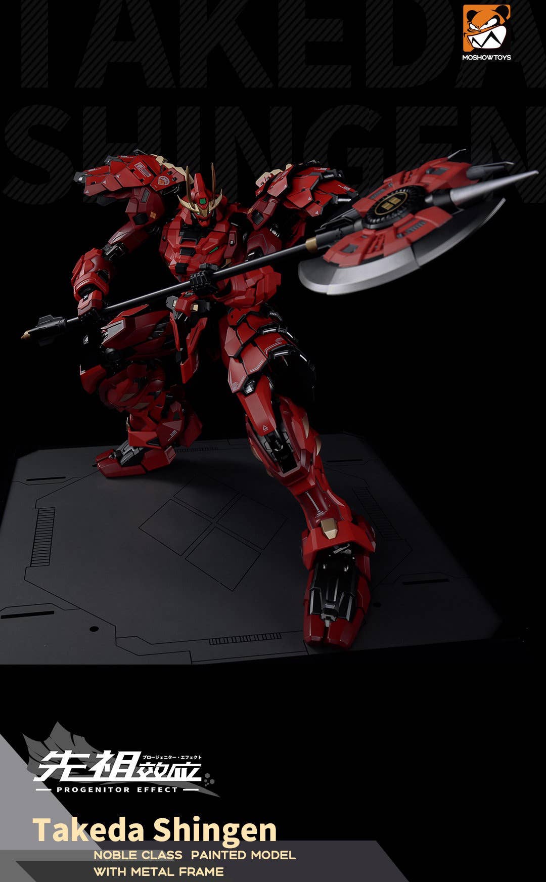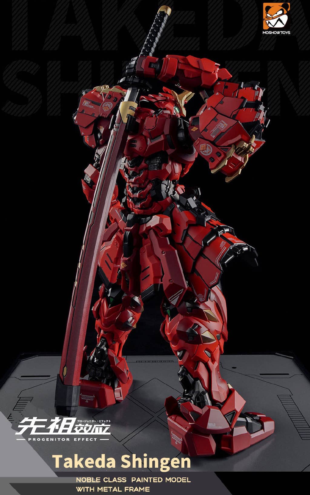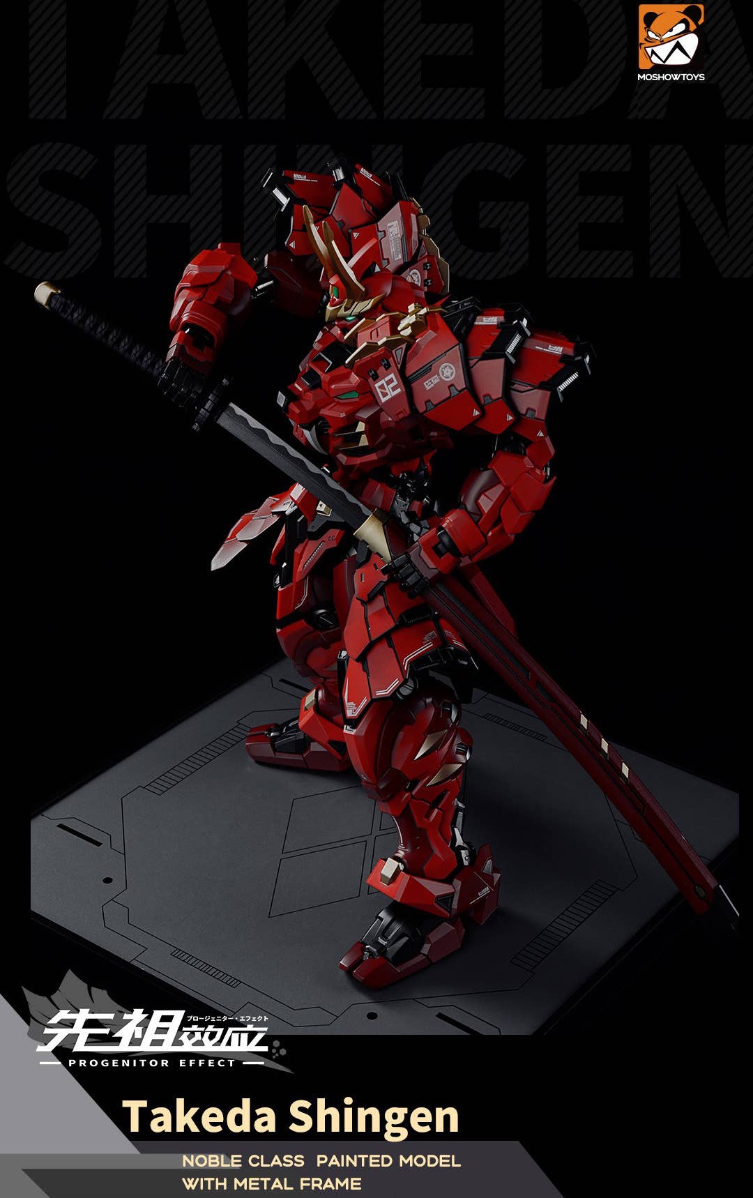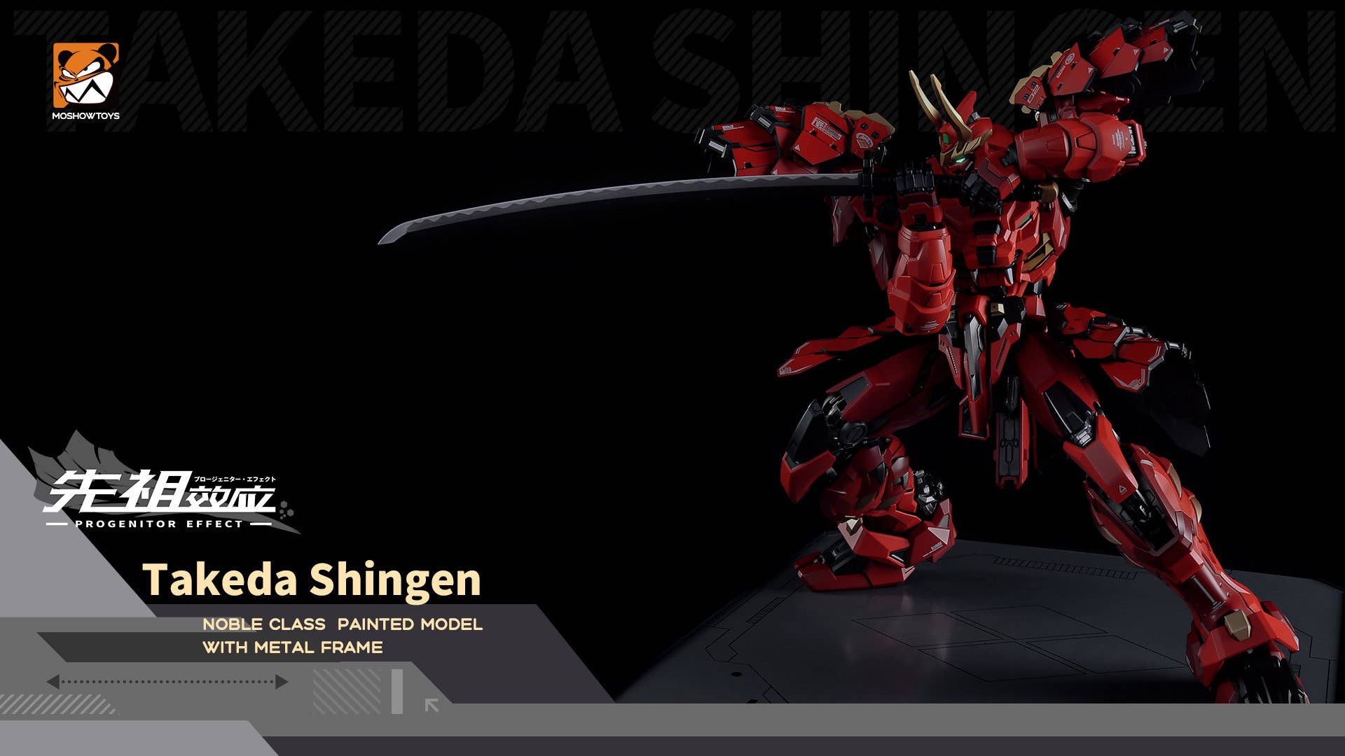 The first entry in Moshow Toys' original alloy posable figure series "Progenitor Effect" is back! The Noble Class Takeda Shingen is an original mecha with a design inspired by the Sengoku warlord of the same name! Its red samurai-style armor has a powerful form, and you can feel its dignity as a military commander with the rich, color-soaked painting. A sword and axe are included as weapons. Order this majestic mechanical warrior for your own collection today!