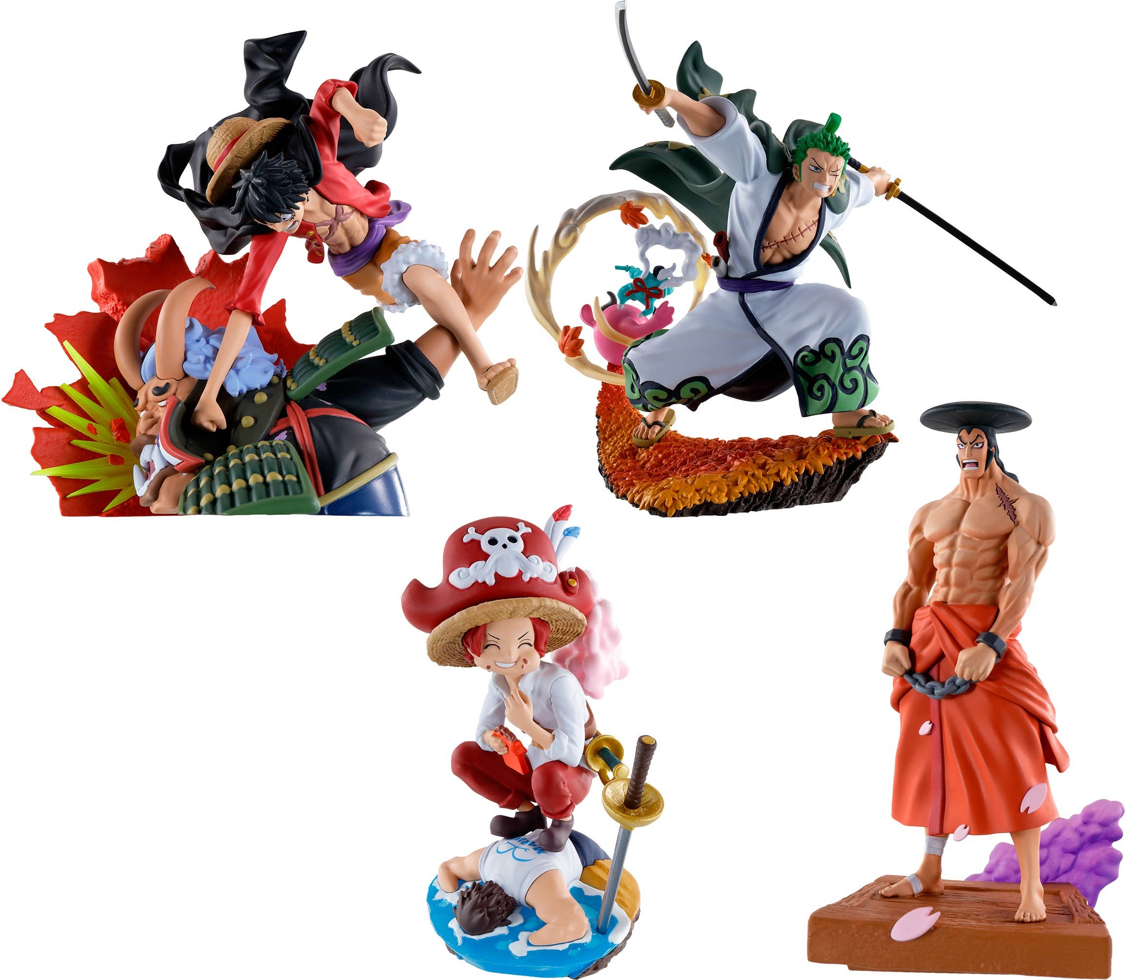 This "One Piece" figure assortment from MegaHouse brings us pivotal scenes and characters from the Wano Kuni arc! Each dynamically posed figure is highly detailed and intensely colored, and looks great from any angle. There are four different figures, and they're randomly packed in boxes of four -- order yours today!