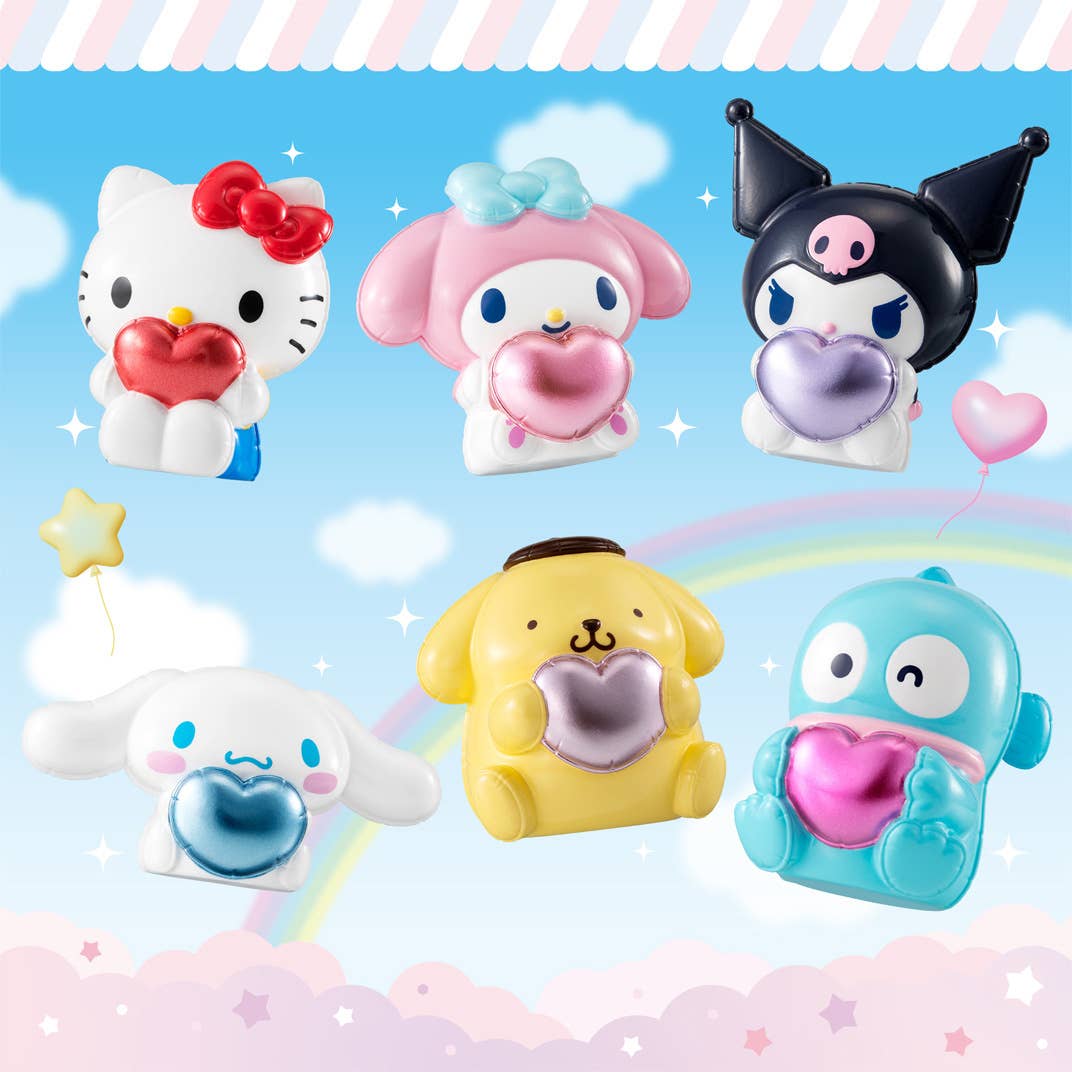 These new Sanrio character figures from Bandai have a glossy coating that makes them look just like balloons! The realistic balloon-like edges and wrinkling recreate these beloved characters perfectly. There are six different characters to collect and trade, and each one comes with a piece of soda-flavored gum; they're randomly packed in boxes of ten. Order yours today!