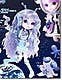 Girls in space! This beautiful "Mercury" Pullip doll comes equipped for space flight (well, not really, but she's adorable!), complete with an early Star-Trek-ish short skirt, a hair dryer I mean ray gun, and the sweetest, long wavy lavender hair! The funny little critter with the big blue eyes is included, as is a metal Pullip doll stand.