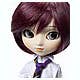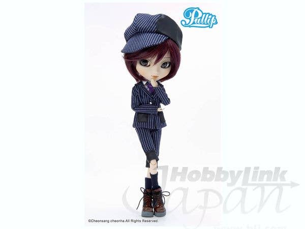 Pullip Kaela rocks our world with a boyish style--and she looks great! Her pinstriped suit with its knee-length pants and purple tartan tie is really cute, and her big chunky boots add a charmingly funky touch. A newsboy cap, perched on her striking deep cranberry-purple hair, tops the whole outfit off perfectly! She's got a faux-leather totebag, too, and a doll stand helps keep her on display for all to admire. And check out her unique eyeprint! This little sweetheart is ready to join your collection today!Please note that the photos shown are of a prototype; the production version may vary.