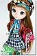 Sparkling eyes and long brown hair are the trademarks of Latte, this pretty Pullip doll dressed up for a day of shopping! She comes with all the accessories you see in the photo, plus a figure stand to keep her upright.