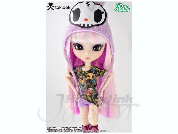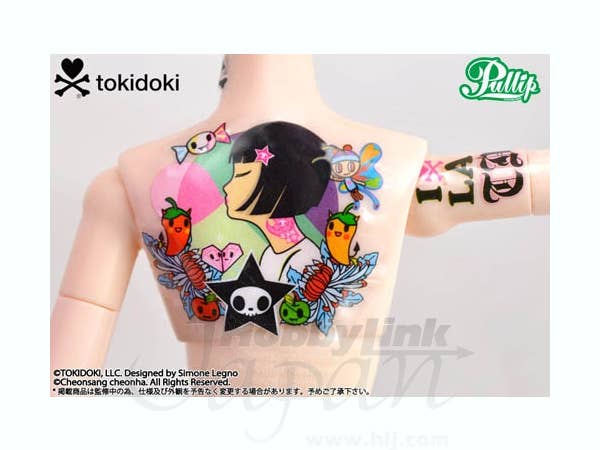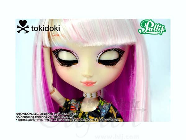Lunarosa is the second collaboration between Groove and eclectic fashion designer Tokidoki! Simone Legno's chaotically colorful designs are all over her charmingly mismatched outfit, including her bag! She has a plush friend to hug, and she even comes with tattoo stickers that you can apply anywhere you like; she also has a stand and a collector card. This sweet treat is ready to meet you today!