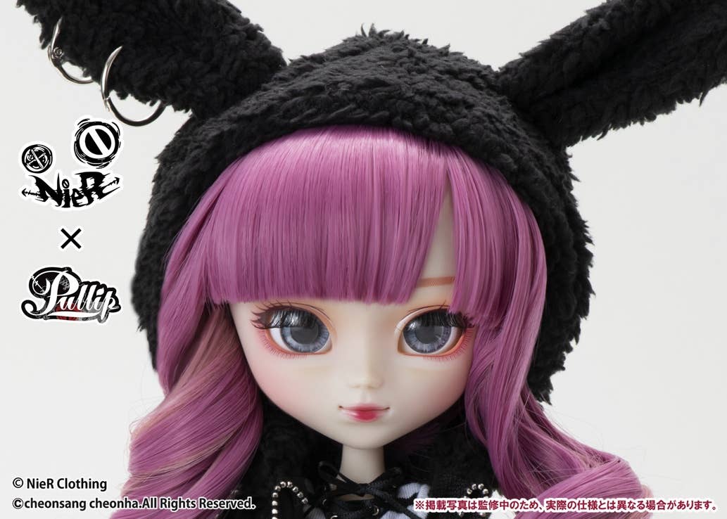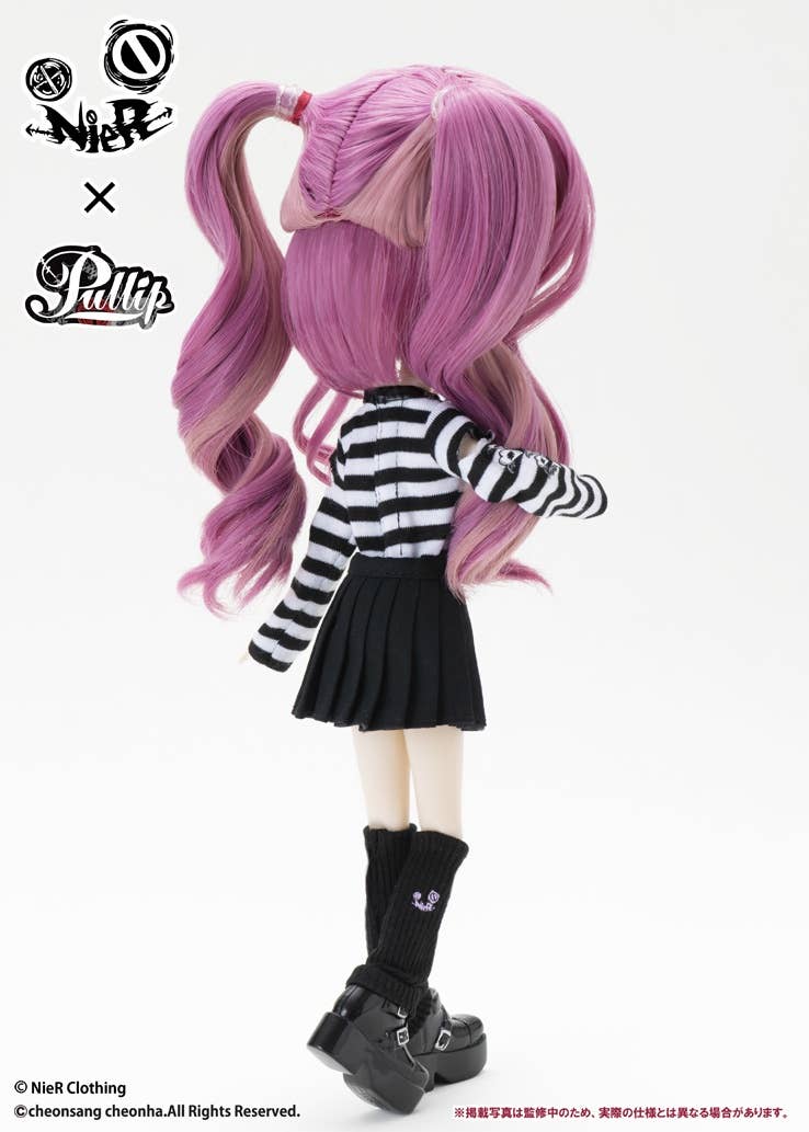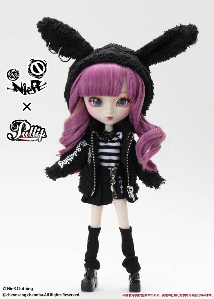 If your life is boring, you should change it -- dress up a bit and you'll feel like a new person! Pullip NieR-chan collaborates with the fashion brand NieR Clothing, wearing doll-sized reproductions of actual clothing items in their lineup! The base color is black, but the outfit also features cute touches like rabbit ears on the hoodie and a heart charm dangling from the skirt. Her hair features a purple base with pink mixed in, and there's plenty of fun accessories like print tights, a choker, a pochette and a brand-original plush toy! Welcome NieR-chan into your doll family today!