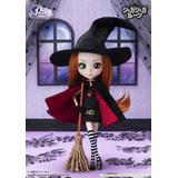 Chocolat Meilleure, the heroine of Moyoco Anno's magical-girl manga "Sugar Sugar Rune," which was also animated, enters into a dream collaboration with Pullip! Her outfit seen on the cover of Volume 1 of the manga is carefully reproduced, with soft velour fabric used for her hat and cloak. The hem of her clock features a wire for posability; she wears an elegant satin dress under the cloak. Her vibrant orange hair can be made even prettier by adding a heart-shaped hairpin, and particular attention has been paid to her glittering green eyes! Her broom and her frog familiar Duke are also included. Order her today, and your doll collection will become even more magical!