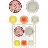MIC's "Puripura Figure Plate" series takes advantage of printing and painting techniques to try out various designs and patterns! This fifth entry in the series provides a gentle atmosphere with cut glass-like patterns on the surface of warm-colored glass. The depth of the cuts is reproduced with printing and painting. They're wonderful to display together with your figures or dolls, and they look great displayed on their own, too! This set includes two large and three small plates. Order yours today!