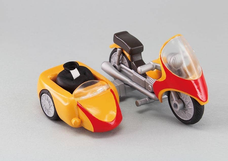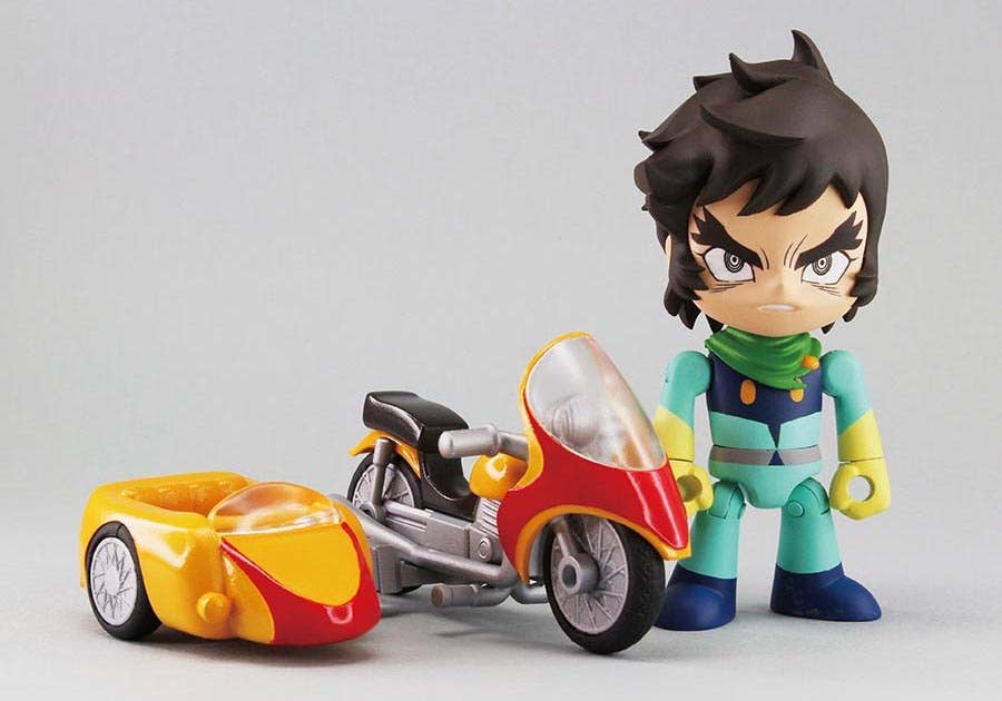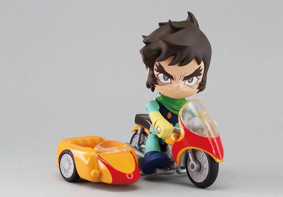From "Getter Robo" comes a super cute and fierce figure of Ryoma Nagare! He measures about 10cm tall and comes with a motorcycle and sidecar, 2 Getter tomahawks, helmet parts and a body part for use with the sidecar. The figure and parts are made of ABS, PVC and Diecast. Order today!