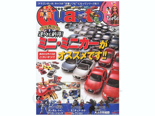 Quanto is an excellent magazine that covers a wide variety of collectibles such as action figures, dolls, cars, model kits, movie merchandise, and more. This month's all-color issue features mini cars from various companies, vintage mini cars, and a look at five mini car experts and their collections. Other topics covered include Hot Toys Appleseed Briareos & Deunan figures, Gundam 00 merchandise, MegaHouse King-Goji, X-Plus Gaira & Sanda, Spacewarp Desktop, and SIC Tamashii Vol. 9, as well as the latest PVC figures, Gundam kits and toys, Star Wars toys, and tokusatsu-related merchandise.