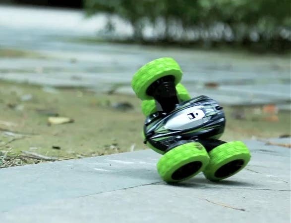 This radio-control vehicle features wild end-over-end action, with the cockpit part flipping back and forth! The tires are filled with bumps for extra traction, making this buggy able to do all kinds of awesome stunts, and able to travel over just about any surface. Its unpredictability makes it extra fun and amazing to watch! Batteries are not included; 27MHz. Order yours today!