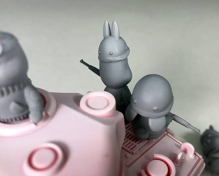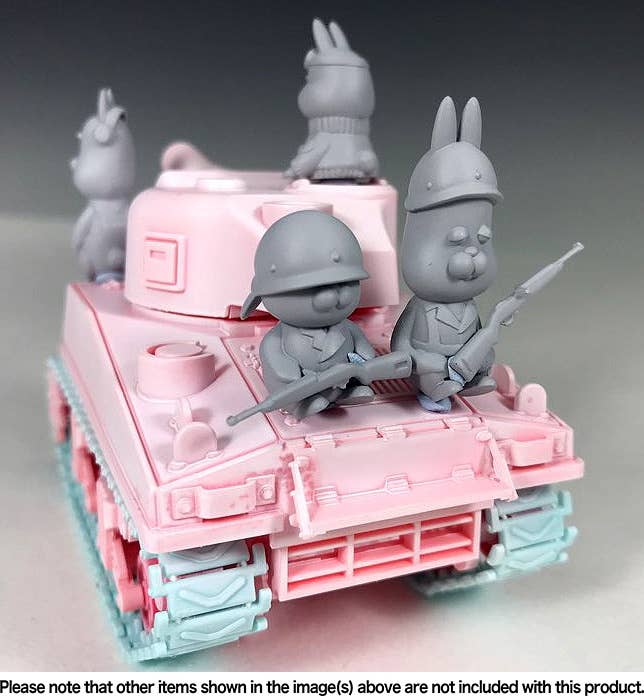 These rough-and-tumble resin rabbits are ready to go! They're adorable, but they're also outfitted in detailed M1 helmets and tanker jackets, and are prepared to crew your M4 Sherman tank (the tank shown in the images is not included). Paint them up as you like and add them to your favorite diorama for an unexpected touch of humor and fun -- order yours today! Contains five figures.