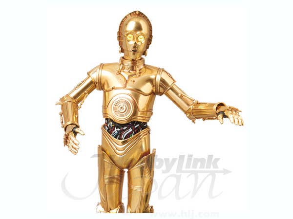 This highly detailed and fully articulated figure of C-3PO stands 28cm tall. And he talks! The internal speech unit randomly plays a selection of seven different phrases recorded from the Star Wars films. Threepio's actual voice! His eyes are lit, too!