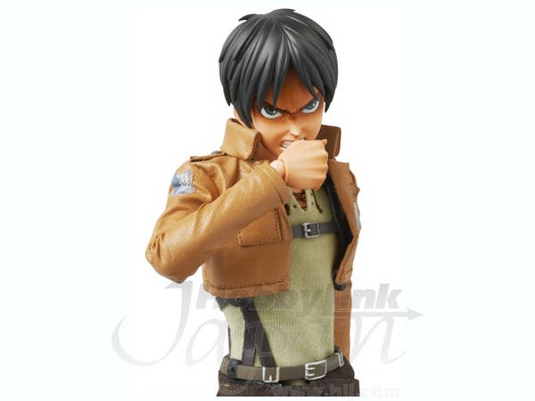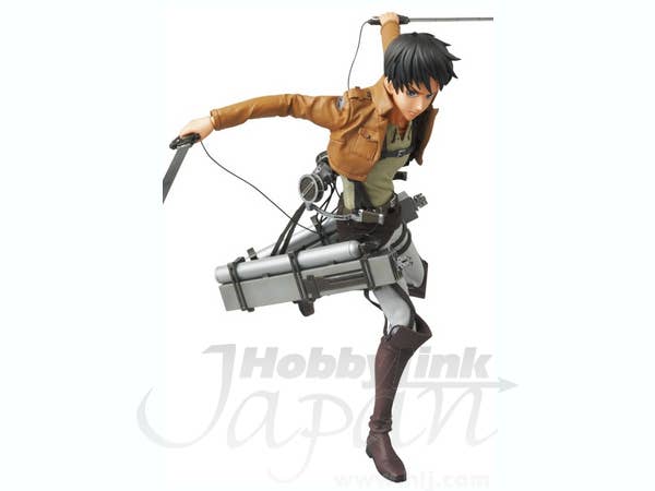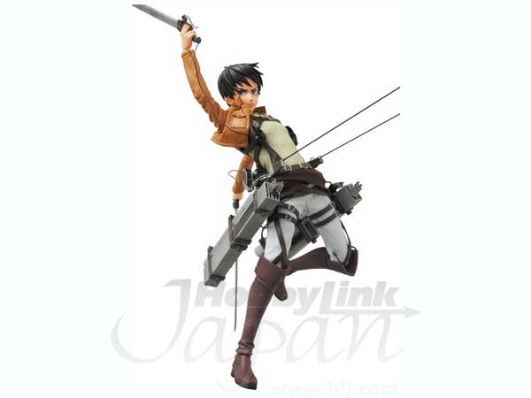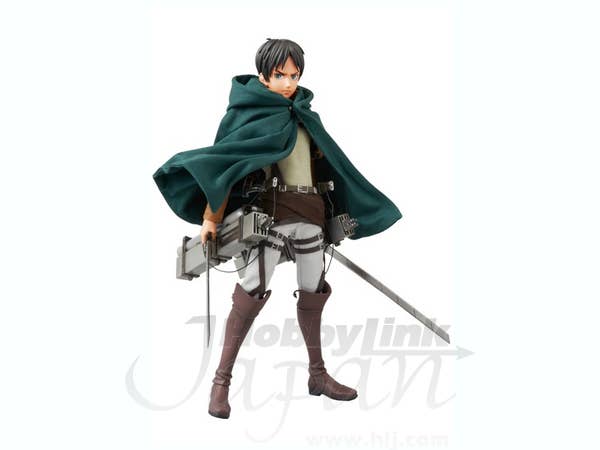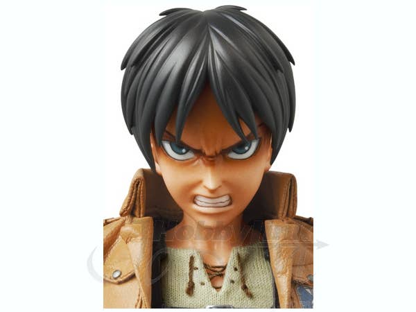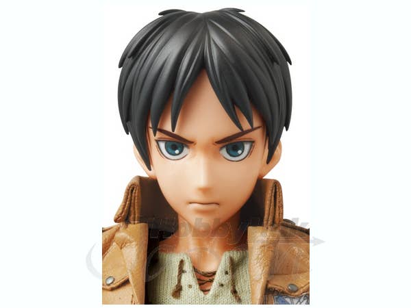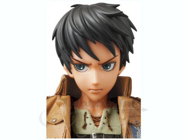 Eren Yeager joins Medicom's lineup as its newest Real Action Hero! The hero of "Attack on Titan" comes with his full fabric outfit as shown here, his Vertical Maneuver Gear and blades, interchangeable facial expressions and hair, and a posable stand for above-the-ground action! A newly developed body means he'll be super-posable, too. Don't miss out and order today!