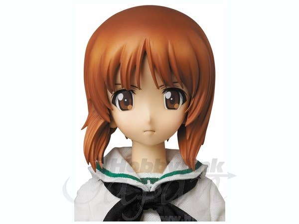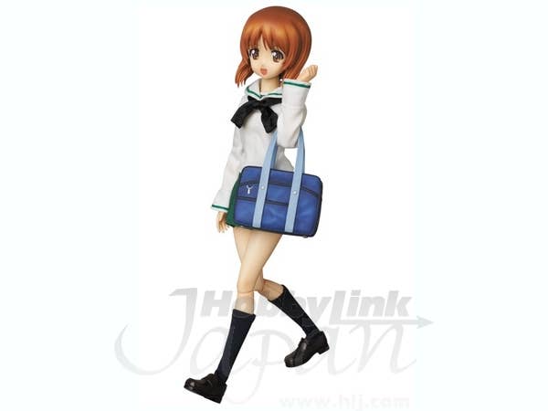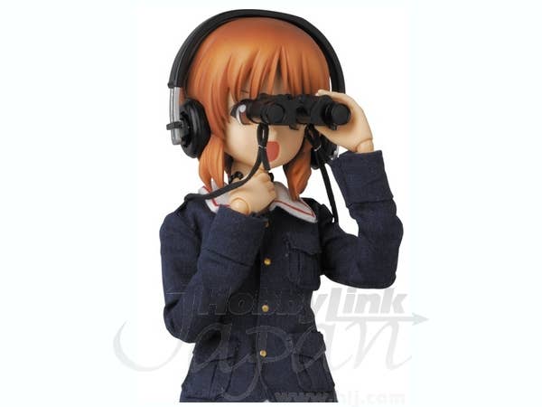 Miho comes with 3 facial expressions and an optional hair part with her headphones attached. Also included is a pair of binoculars, her bag, her bandaged teddy bear, a tank-shaped cake, a flower decoration for her uniform, the number 8 lottery card from the series, and a stand with adjustable arm! She even comes with a panzer jacket, so you can display her in her school uniform or dress her up for battle!