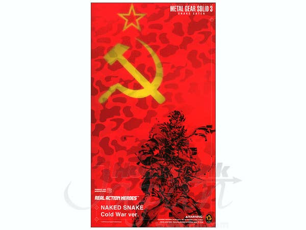 Medicom Toy proudly presents their top-quality RAH action doll of Naked Snake (a.k.a. Big Boss), who comes suited in his combat outfit featuring the "Cold War camouflage" pattern with the front side representing the Soviet Union flag and the back side representing the US flag! The 30cm highly-articulated figure is a faithful realization of the protagonist based on his design for the "Metal Gear Solid 3: Snake Eater" PS2 game along with the special camouflage pattern printed on his outfit. He can be equipped with the included custom pistol with suppressor, CQC knife and a combat knife. Three interchangeable hands are provided to achieve multiple poses, and a figure stand is included for a stable display. A superb action doll of an iconic video game character that's not to be missed! Please note that the photos shown are of a prototype; the production version may vary.