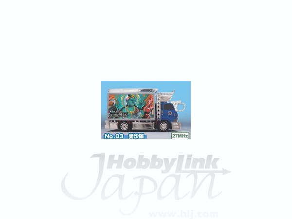 Known as dekotora (one of those very Japanese abbreviations that literally means "decorated truck"), vehicles like this are seen at auto and truck shows across Japan, not to mention just driving down the road! And now you can own and drive your own little slice of Japanese automotive culture with this ultra-cool non-scale radio-controlled dekotora from Aoshima. Measuring about 20cm long, this little guy can drive forward and backward and turn left and right. Includes self-adhesive stickers and green marker lights to customize it even further (lights do not operate). Requires three AA batteries for the truck and two AA batteries for the controller; batteries are not included. Two Radical-Mini Dekotoras of differing controller frequencies can be operated together; this Basara operates on 27MHz. Check out the other Radical-Mini Dekotoras, linked below!